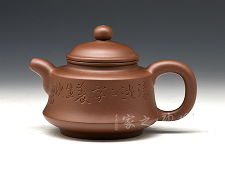 光貨離不開裝飾。俗話說“壺隨字貴,字隨壺傳”:光壺不刻字,就是一把光壺;壺上面刻了大師、名人的字,一把壺的含金量就高了,收藏價值就更高,升值潛力就更大。王福君與中國工藝美術(shù)大師譚泉海合作最多,其次是徐安碧、鮑志強、毛國強(均為中國工藝美術(shù)大師、中國陶瓷藝術(shù)大師)。