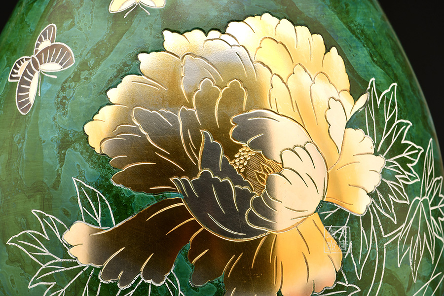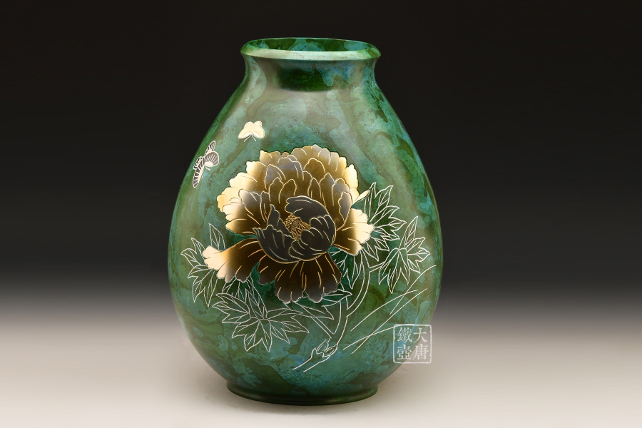 牡丹 青海色銅花瓶 [ 編號:80647 ]