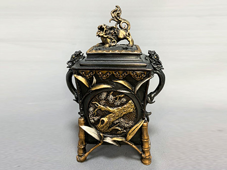在江戶時代,金壽堂還是以制作鍋、釜為主,到了明治時代以后,開始制作銅器(高岡銅器)及鐵瓶。因其品質(zhì)優(yōu)良,在業(yè)界之中獲得了很高的聲望。后來由于戰(zhàn)爭的關(guān)系,鑄造被迫中斷。到了60年之后的平成時代,市場上對于銅器等金屬器物的需求愈發(fā)膨脹,高岡地區(qū)的職人工匠為了紀念曾經(jīng)的“金壽堂”,重新以“金壽堂”之名,專注于制作優(yōu)良銅器、銀器以及鐵瓶。又因“高陵”是高岡的別名,于是將堂號取名為“高陵金壽堂”。