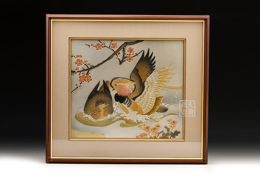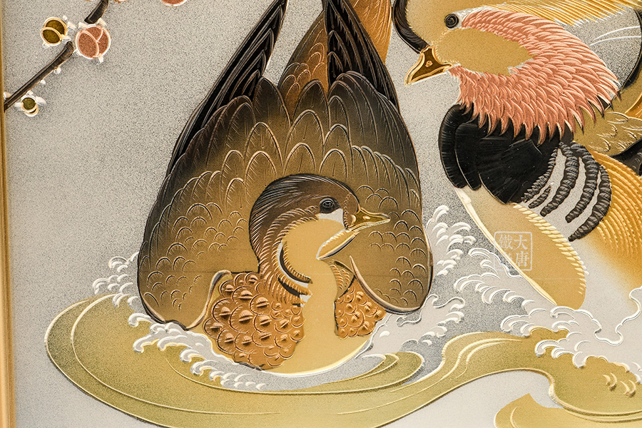 雕金銅板畫 鴛鴦