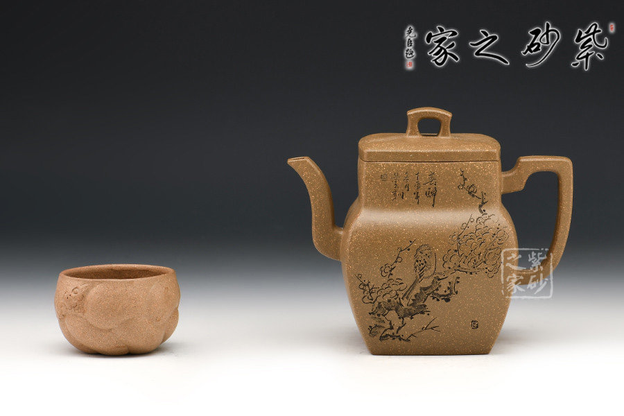 張宏桃,得何道洪、汪寅仙、施小馬指點(diǎn),以純手工制作為主,方器見(jiàn)長(zhǎng)。擅于將繪畫和浮雕融入壺體。