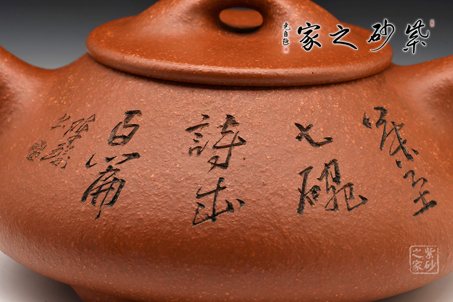 泥性:原礦因含緞泥、紅泥、紫泥等諸多共生礦,陶之后,于深沉之“橙紅色”底上,滿佈五彩斑斕的粗細(xì)、深淺之紅、黃星斑點(diǎn)。