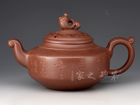 特點(diǎn):原礦因含緞泥、紅泥、紫泥等諸多共生礦,陶之后,于深沉之“橙紅色”底上,滿佈五彩斑斕的粗細(xì)、深淺之紅、黃星斑點(diǎn)。