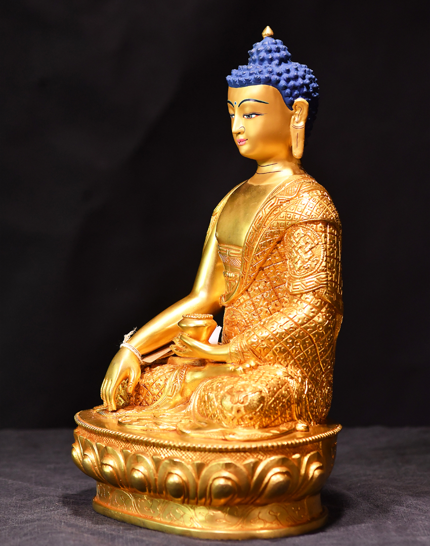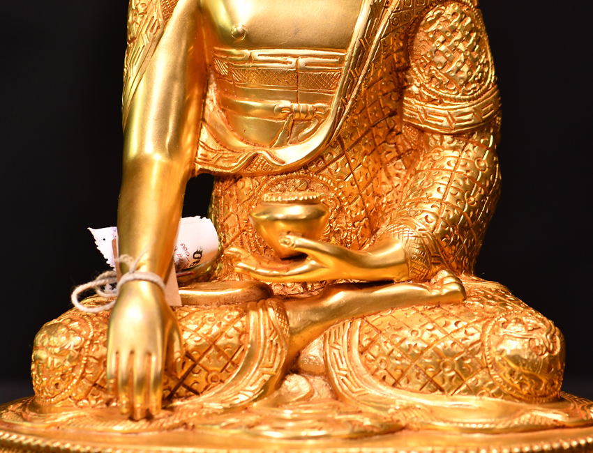 產地:尼泊爾佛像 工藝:鎏金 創作年份:2019 題材:釋迦牟尼 繪制時間:0日 尺寸:*33cm 重量:0 g 材質:紫銅 使用場地: