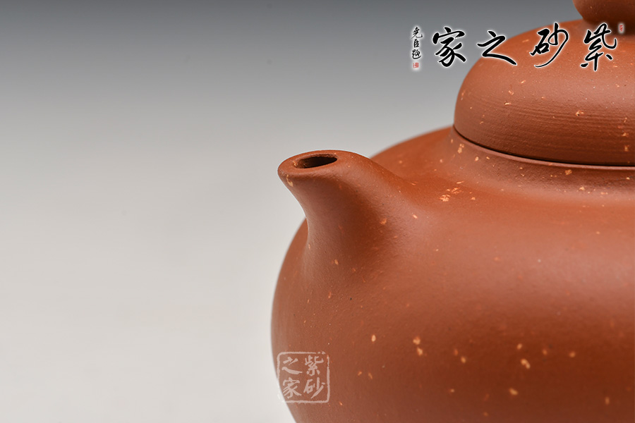 此壺造型小巧可愛,十分惹人喜愛,精選上等泥料,倍添神韻。壺身圓飽周整,短曲流,下有足,壺口與蓋相契合,規(guī)整圓弧。流、把處以暗接手法銜接,以弧線過渡,流暢自然。流與把前后呼應(yīng),圓潤流暢的線條,有穩(wěn)實于形外的動感。