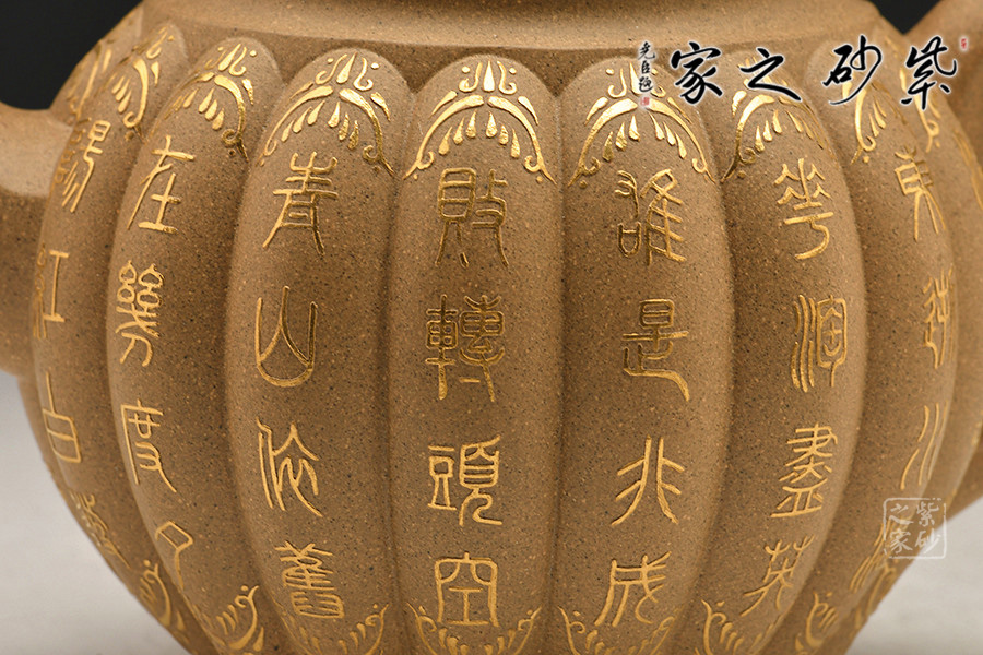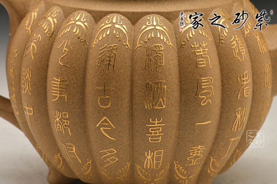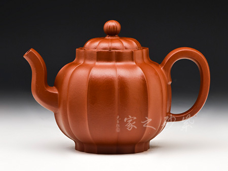 此作技藝超群,穩(wěn)重端莊、典雅大方。整個菱線自壺口至壺底相交,筋紋分明,凹凸有致,排列整齊,比例精準。壺底三足巧妙與壺身銜接,渾然一體,更添古感。壺蓋與壺口十分嚴密,蓋上圖案為菱花花瓣,綻放之姿,壺鈕如蕊,與壺身筋紋呼應。此壺制作講究,一種圓透而渾厚,均勻又飽滿的藝術效果。