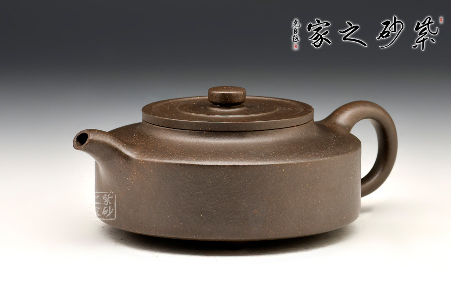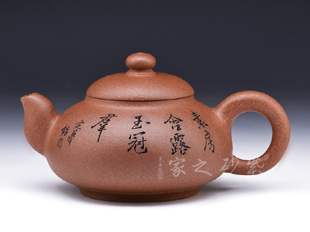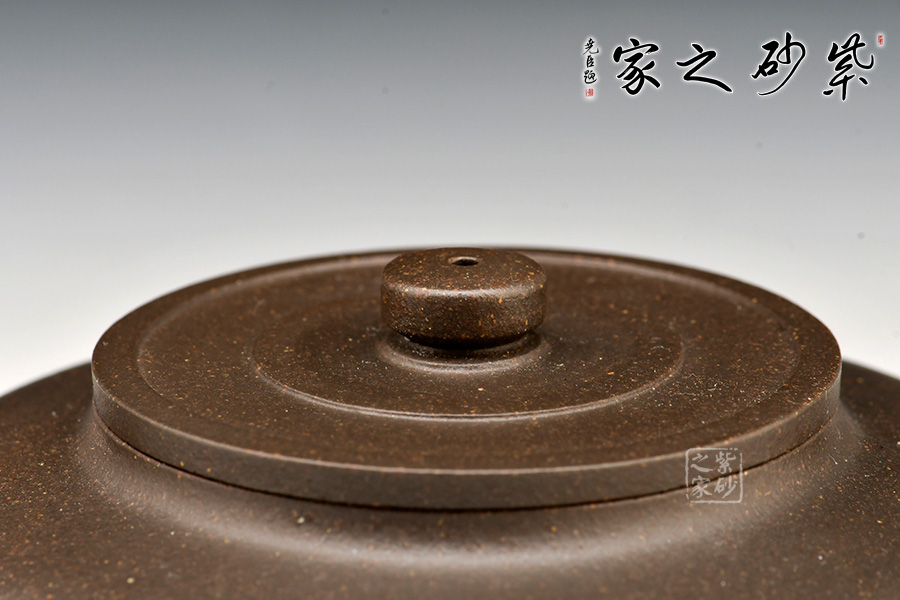 經(jīng)典壺型:此壺為清代陳鴻壽設(shè)計、楊彭年所制的“曼生壺”款式之一,其特點是去除繁瑣的裝飾和陳舊的樣式,務(wù)求簡潔明快。壺品古典高雅,坡頸平口,平蓋扁鈕,溫潤細膩,泥質(zhì)泛紫,工藝精到。此壺圓潤而不失剛勁,暗蘊太極,有形而無窮,縱橫中見青銅遺韻,肅然絕俗。