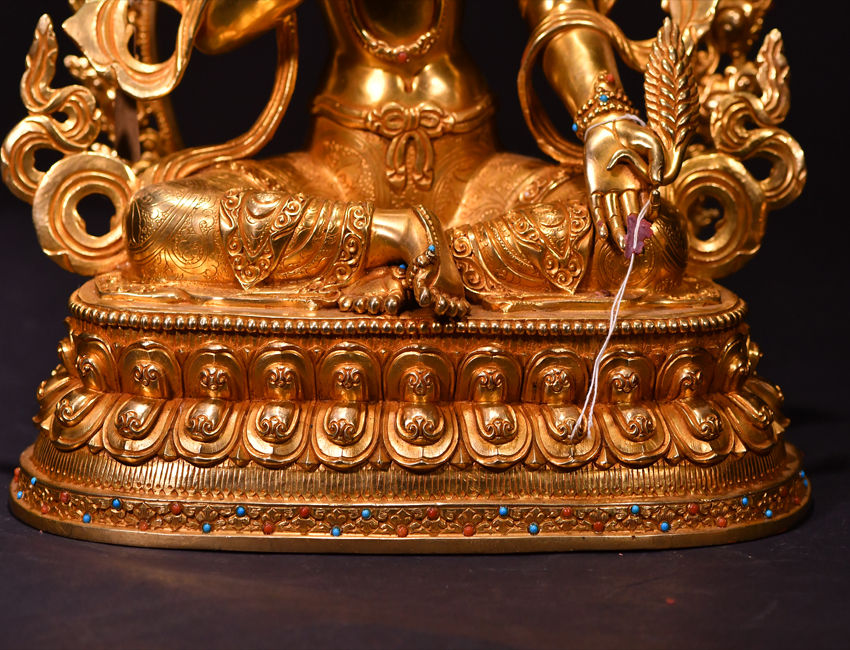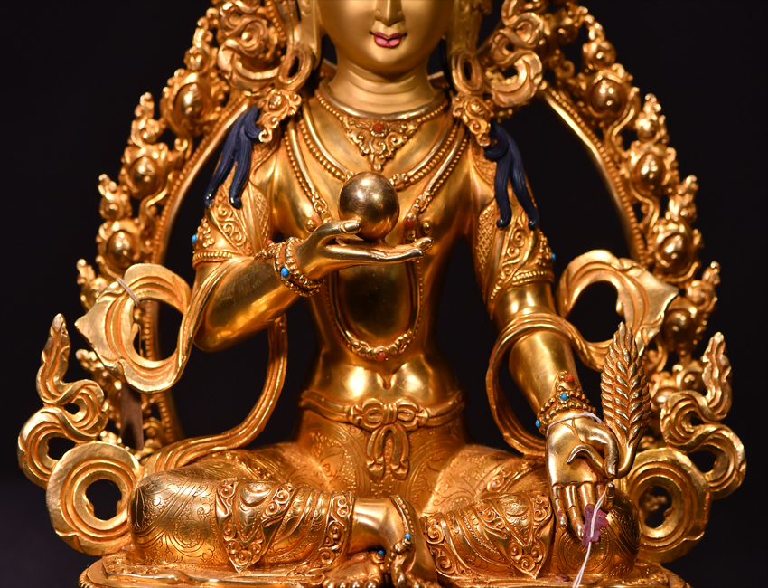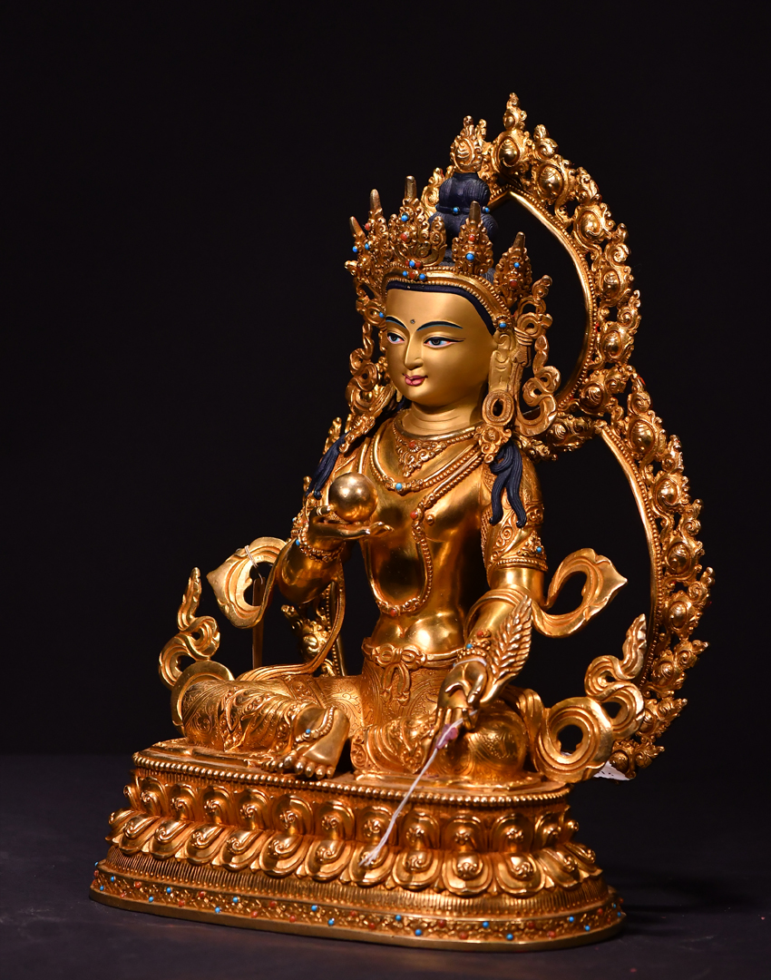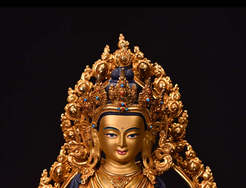 尼泊爾佛像也稱之為密宗佛像或藏傳佛像,尼泊爾佛像是以紫銅為胎體,黃金為外衣,純手工打造的銅鎏金佛像,使用泥金進行開臉,異常殊勝所以尼泊爾佛像價格比國內機器佛像普遍要高一些!
