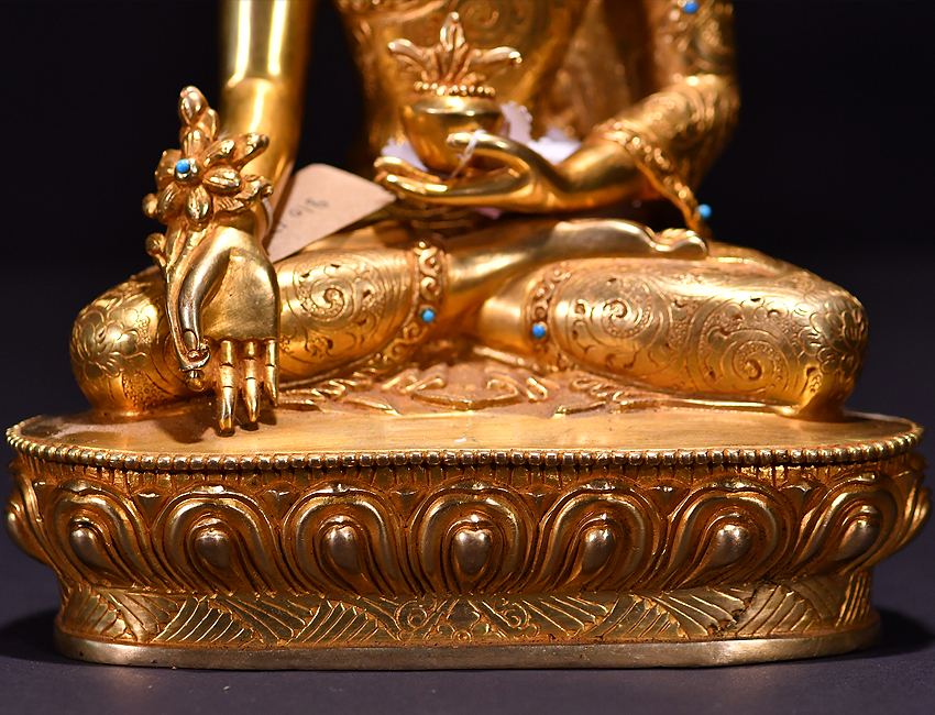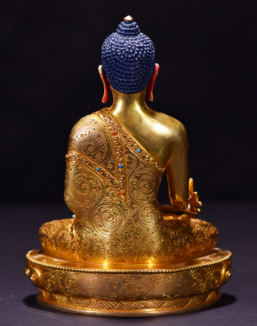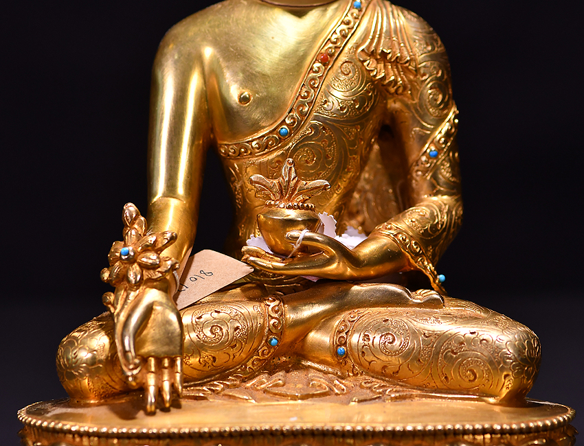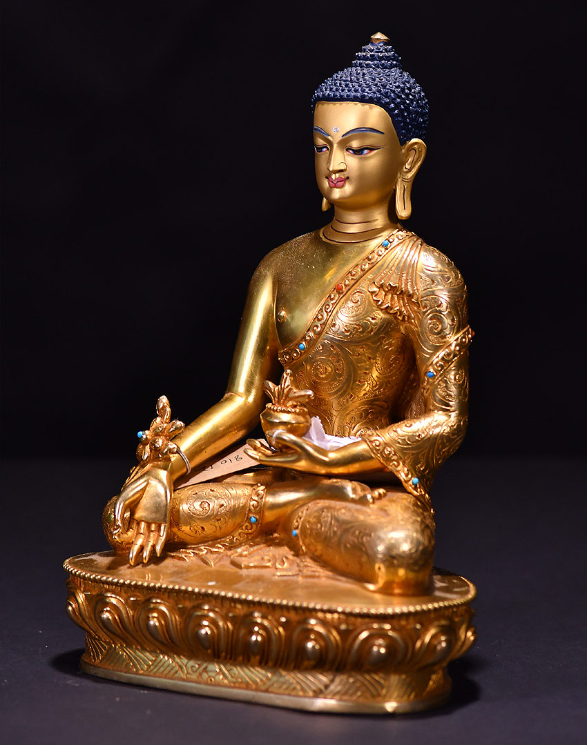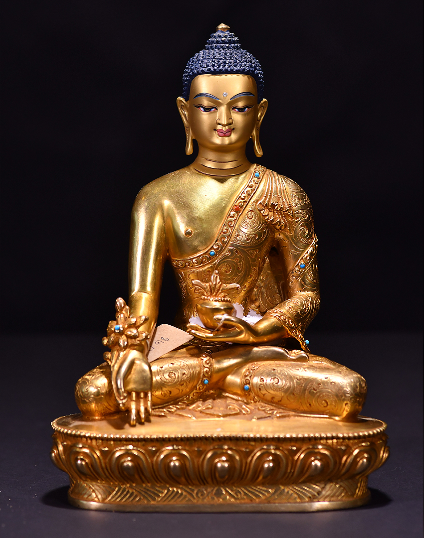 產地:尼泊爾佛像 工藝:鎏金 創作年份:2019 題材:藥師佛 繪制時間:0日 尺寸:*23*23cm 重量:0 g 材質:紫銅 使用場地: