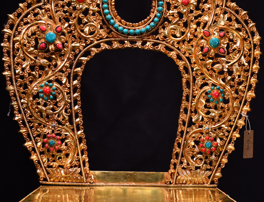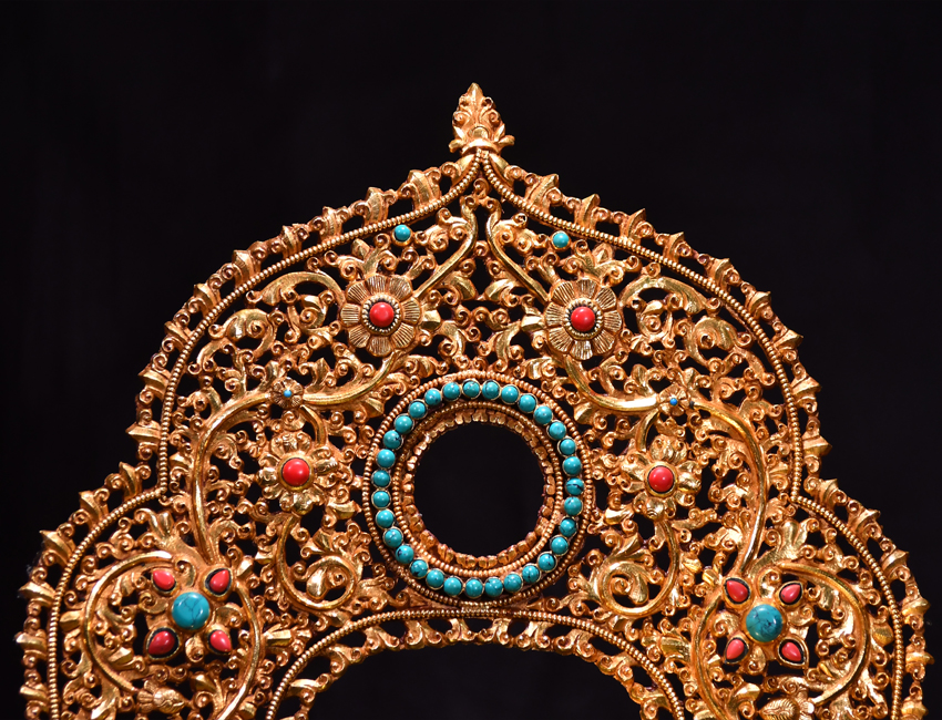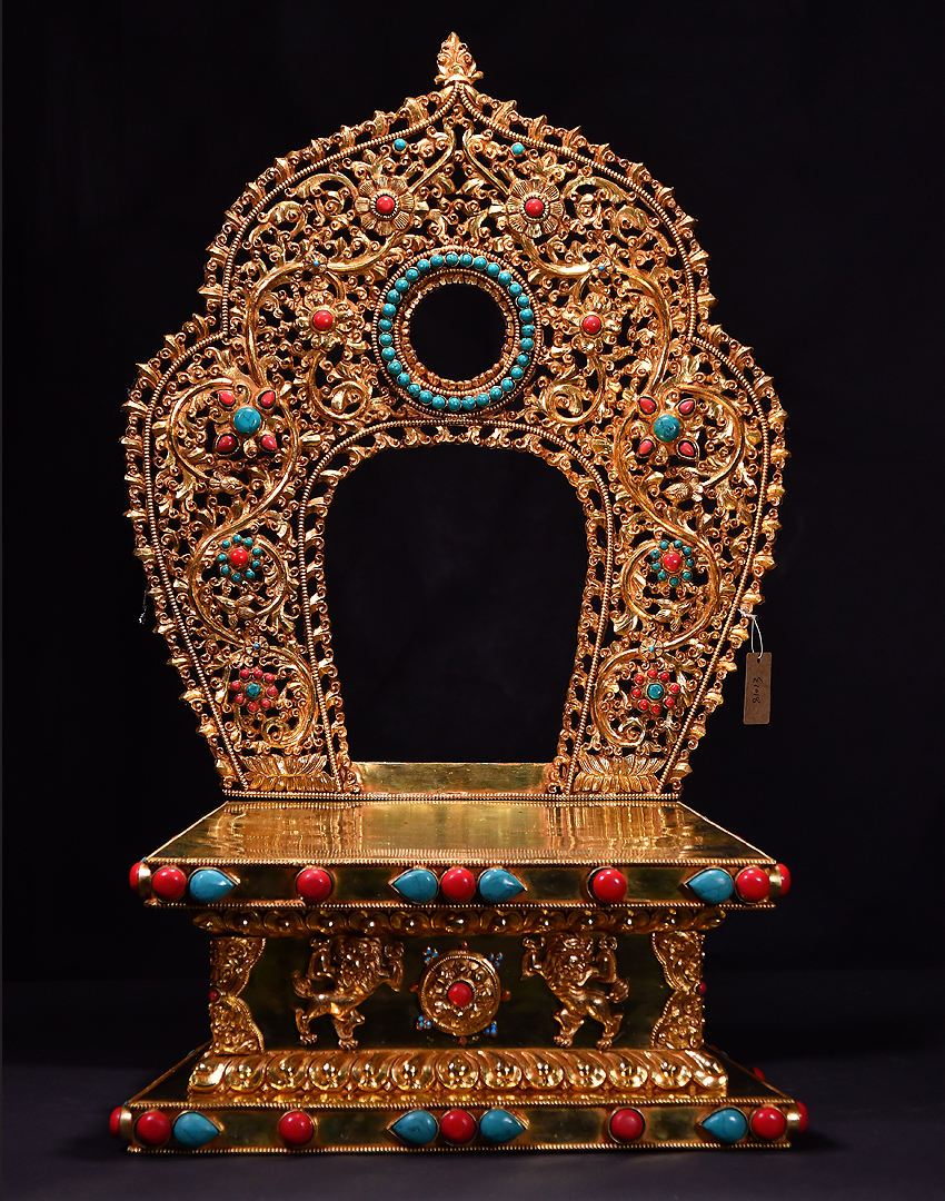 大圣唐卡商城 >> 作品詳情 >> 尼泊爾佛像底座背光鎏金60cm