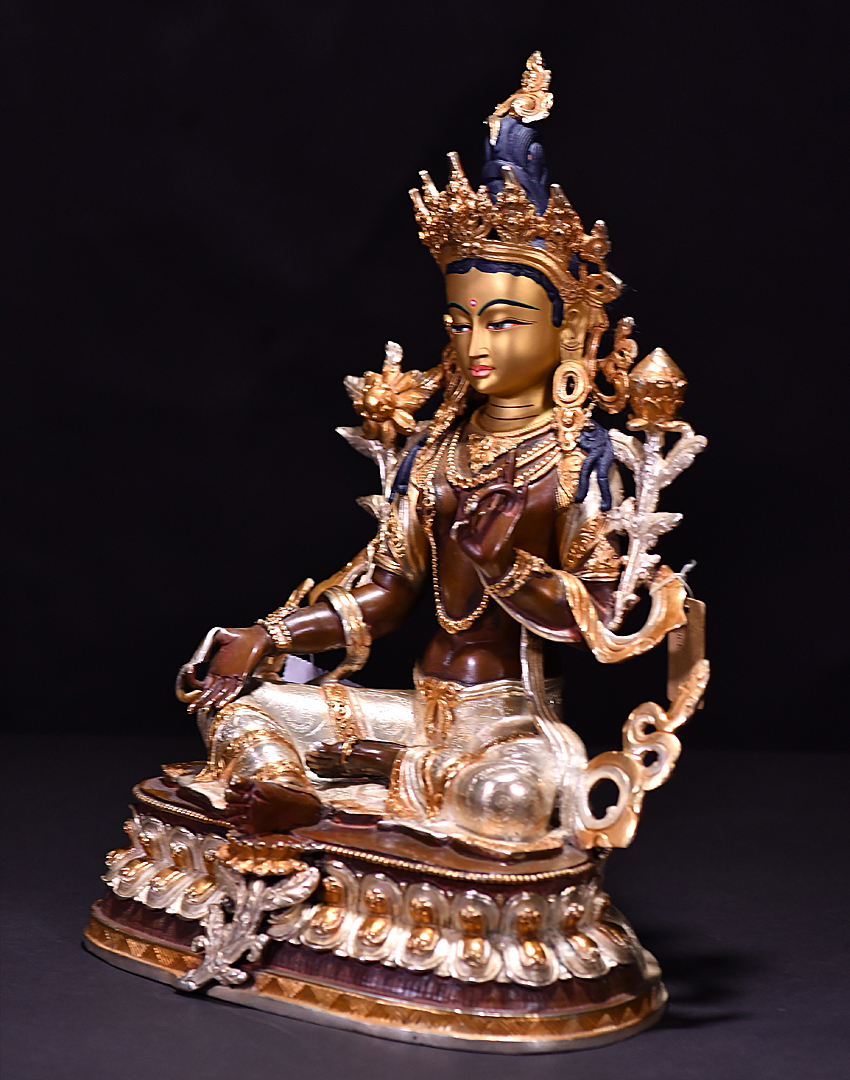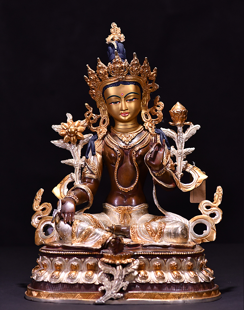 產地:尼泊爾佛像 工藝:紫銅 創作年份:2019 題材:綠度母 繪制時間:0日 尺寸:*33cm 重量:0 g 材質:紫銅 使用場地: