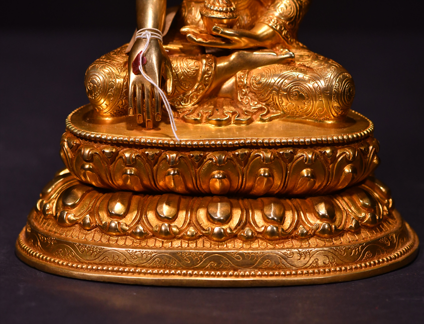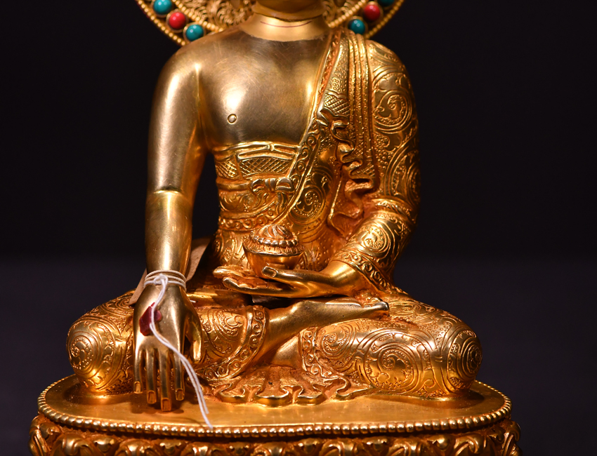 尼泊爾佛像也稱之為密宗佛像或藏傳佛像,尼泊爾佛像是以紫銅為胎體,黃金為外衣,純手工打造的銅鎏金佛像,使用泥金進行開臉,異常殊勝所以尼泊爾佛像價格比國內機器佛像普遍要高一些!