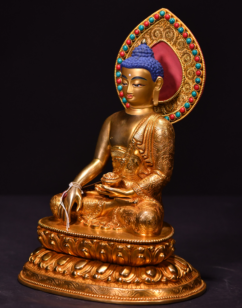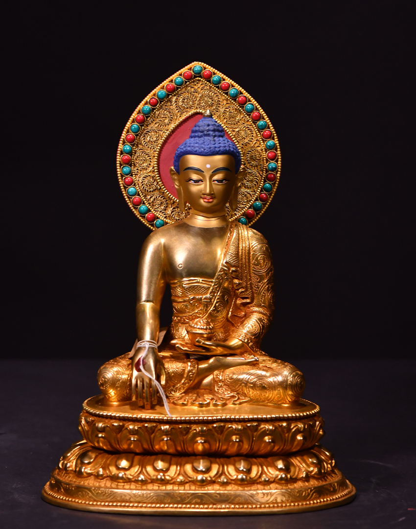 產地:尼泊爾佛像 工藝:鎏金 創作年份: 題材:釋迦牟尼 繪制時間:0日 尺寸:*23*23cm 重量:0 g 材質:紫銅 使用場地: