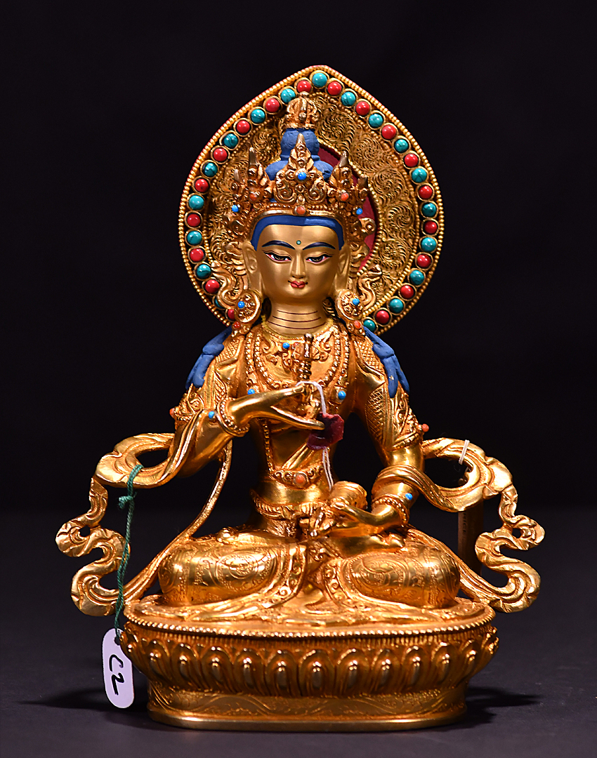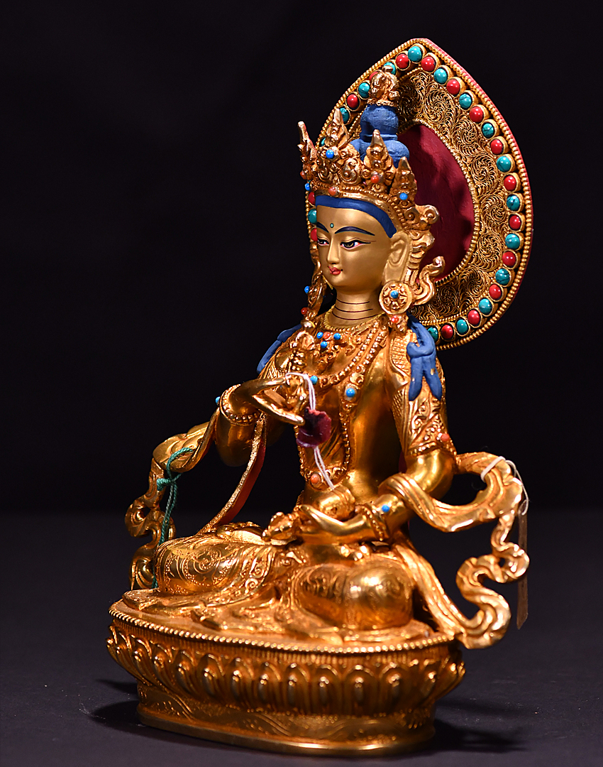 產地:尼泊爾佛像 工藝:鎏金 創作年份:2019 題材:金剛薩埵 繪制時間:0日 尺寸:*23*23cm 重量:0 g 材質:紫銅 使用場地: