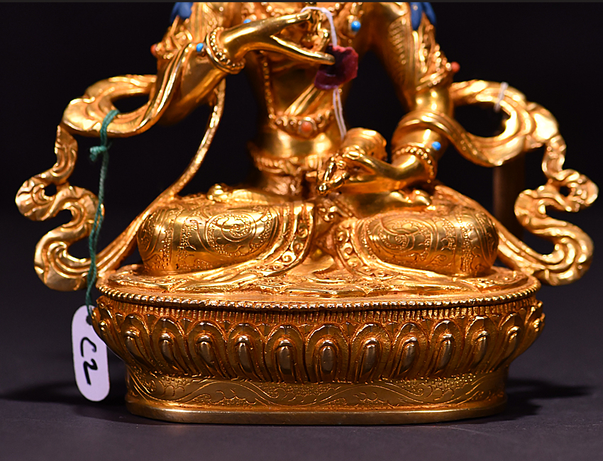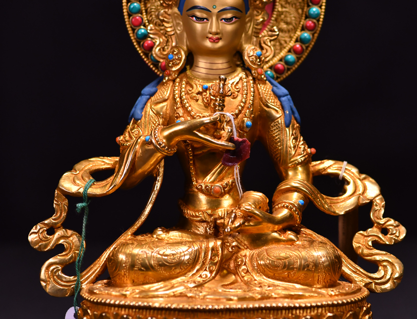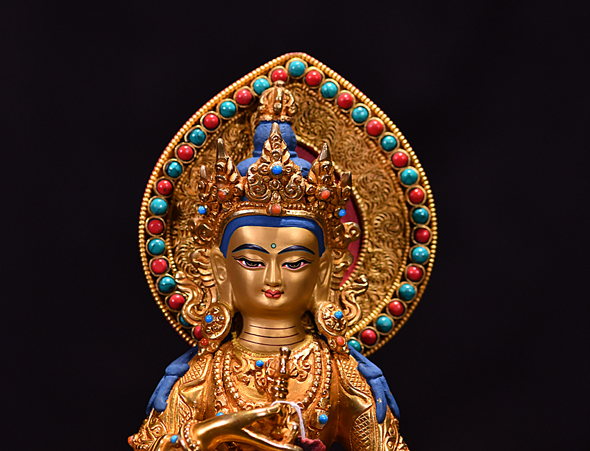 尼泊爾佛像也稱之為密宗佛像或藏傳佛像,尼泊爾佛像是以紫銅為胎體,黃金為外衣,純手工打造的銅鎏金佛像,使用泥金進行開臉,異常殊勝所以尼泊爾佛像價格比國內機器佛像普遍要高一些!
