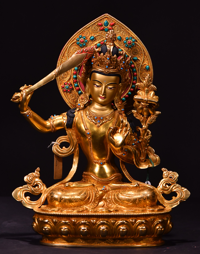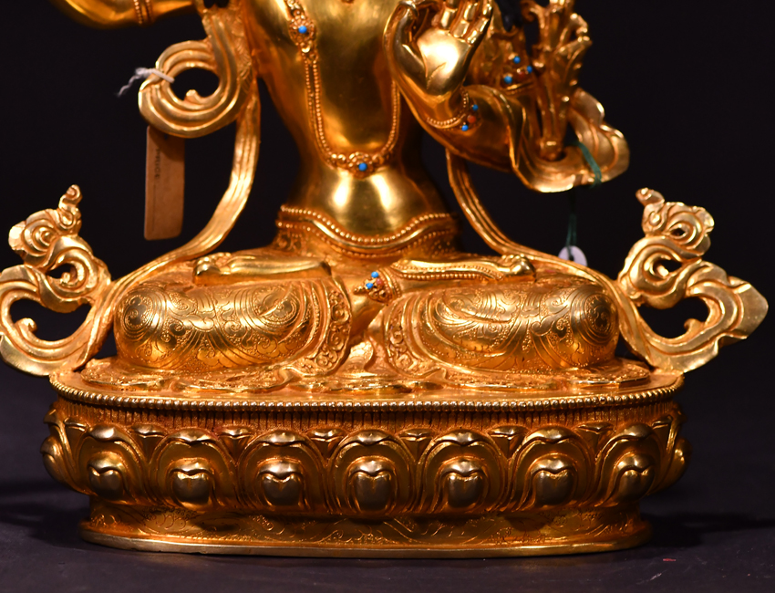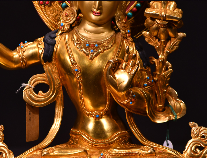 尼泊爾佛像也稱之為密宗佛像或藏傳佛像,尼泊爾佛像是以紫銅為胎體,黃金為外衣,純手工打造的銅鎏金佛像,使用泥金進行開臉,異常殊勝所以尼泊爾佛像價格比國內機器佛像普遍要高一些!