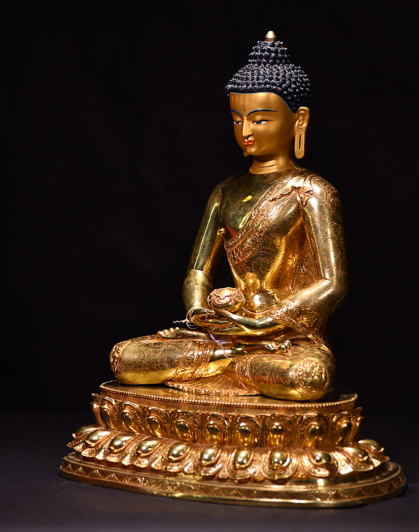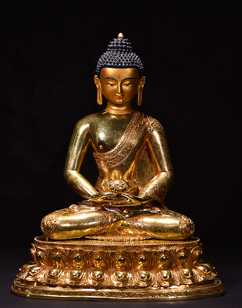 尼泊爾佛像也稱之為密宗佛像或藏傳佛像,尼泊爾佛像是以紫銅為胎體,黃金為外衣,純手工打造的銅鎏金佛像,使用泥金進行開臉,異常殊勝所以尼泊爾佛像價格比國內機器佛像普遍要高一些!