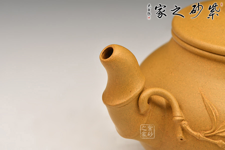 此壺取名竹蘊(yùn),作圓式,嘴、把、鈕采用竹節(jié)裝飾,整器更添幾分圓潤之感。