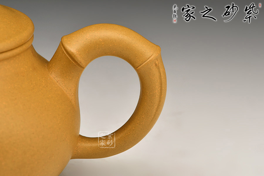 泥性:感甜嫩綿密,質(zhì)堅(jiān)而溫潤,呈近田黃色調(diào),為江蘇宜興趙莊山系朱泥礦~黃石黃之共生礦,經(jīng)挑揀練製而成,因含鐵量只達(dá)6%左右,致陶之后呈“金田黃色”。