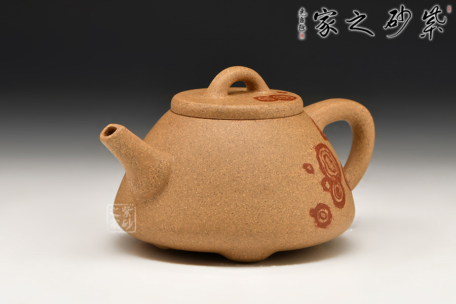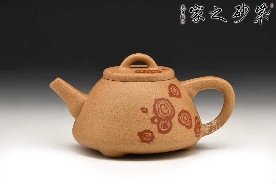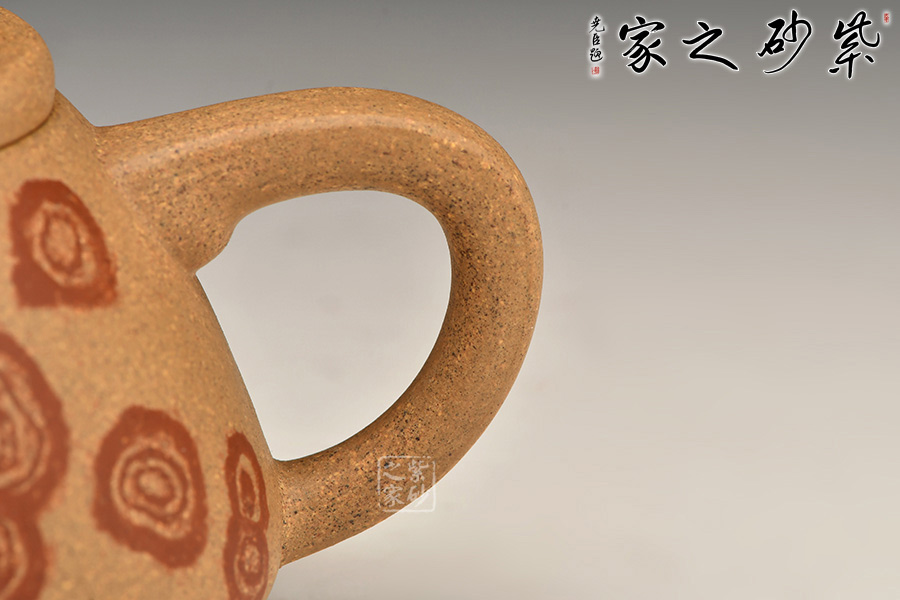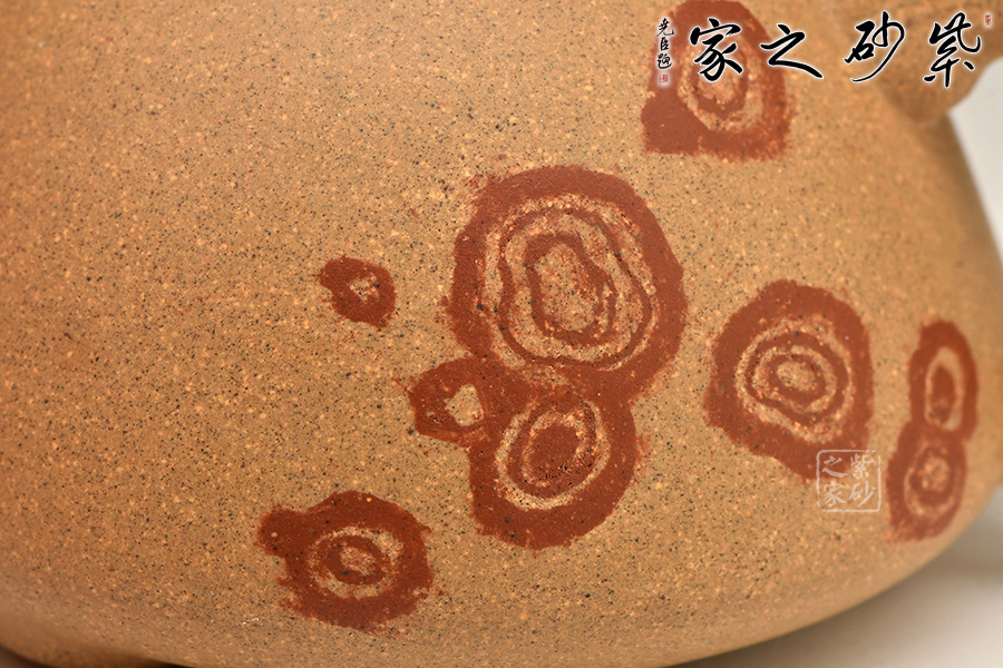 泥性:感甜嫩綿密,質(zhì)堅(jiān)而溫潤,呈近田黃色調(diào),為江蘇宜興趙莊山系朱泥礦~黃石黃之共生礦,經(jīng)挑揀練製而成,因含鐵量只達(dá)6%左右,致陶之后呈“金田黃色”。