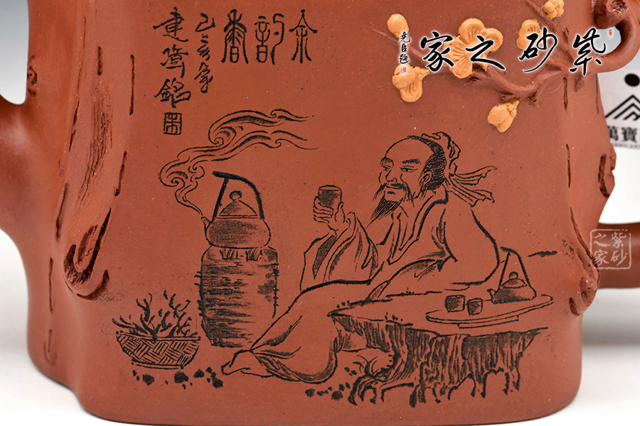 A面: 裝飾: 品茗圖 裝飾者:朱建偉 裝飾內(nèi)容: 居士煮茶品茗,形象生動(dòng),生活氣息濃厚