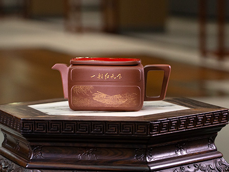 2005年《鑲金大飛天壺》獲廣州(國(guó)際)茶博會(huì)紫砂陶藝優(yōu)秀作品展金獎(jiǎng)