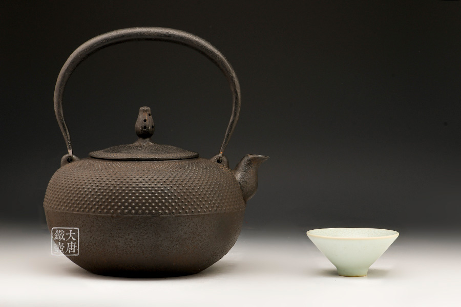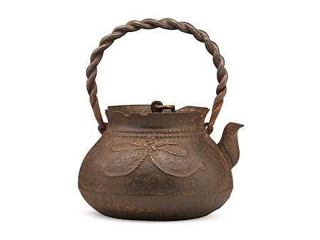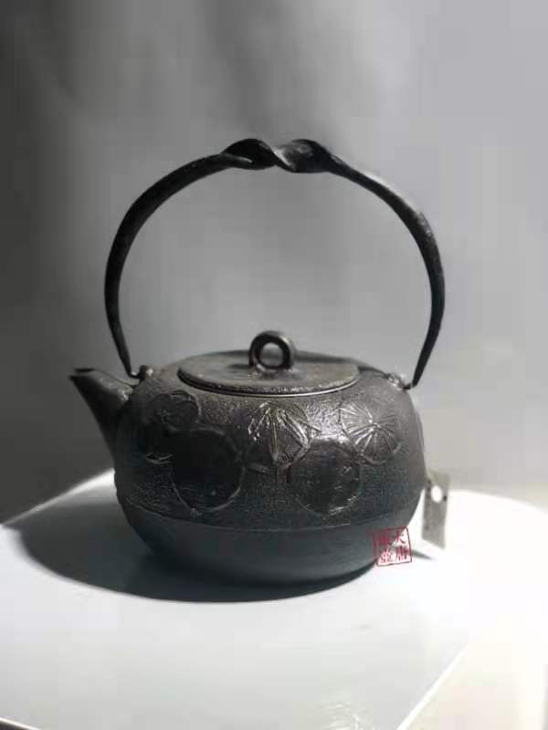 虎山工房創(chuàng)立于1955年,位于盛岡市手作村,是日本南部鐵器中的重要代表?!被⑸健敝从诔醮獛熜芄绕郊某錾厥且郧澳喜糠曫B(yǎng)老虎的地方,故取“虎山”作為工房的名字。熊谷平吉擅長印刻湯釜和鐵瓶上的圖案,制作的鐵器帶有濃厚的藝術(shù)氣息,被視為鐵和火融合于一身的茶道藝術(shù)品。虎山工房制作的鐵瓶,主要以砂模澆鑄的方法為主,但是改進(jìn)了木質(zhì)刮板的制模技術(shù),從而得以制作出多邊形的鐵器,在南部鐵器中獨(dú)樹一幟。