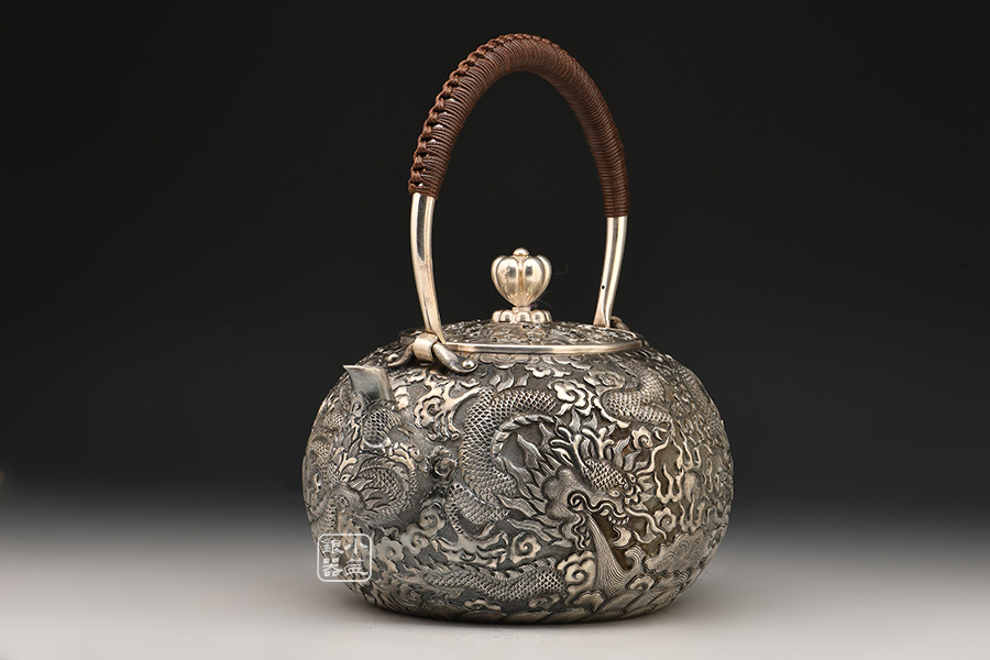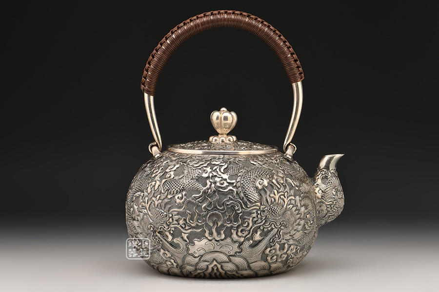 小笠銀器 雙龍戲珠銀壺 [ 編號:81193 ]