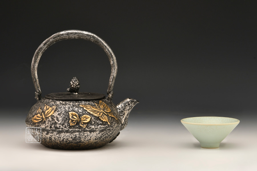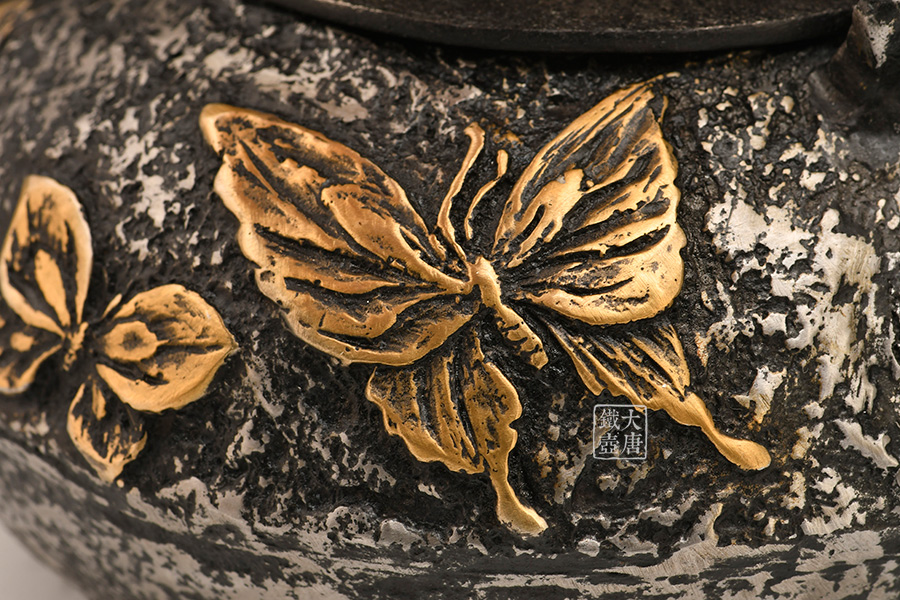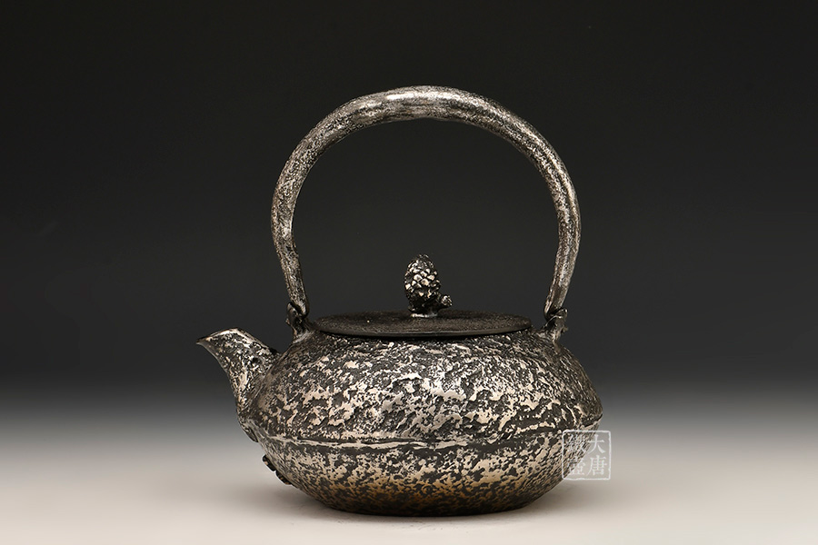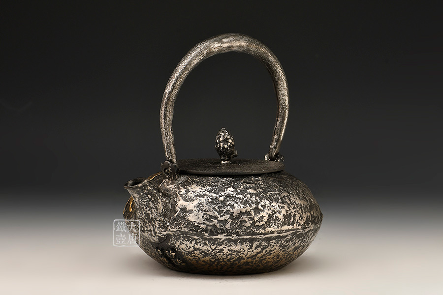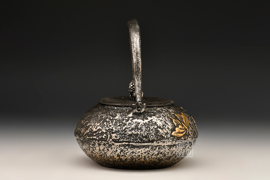 荒井工房的鐵瓶除了在鑄造工藝上有嚴(yán)格的規(guī)范和體系,在鐵瓶裝飾技術(shù)上也頗有建樹。除了傳統(tǒng)的印刻技術(shù)外,荒井工房還掌握了非常出色的金銀鑲嵌技藝,尤其以大片的鏨刻銀片最為出眾,這在山形當(dāng)?shù)靥每谥歇?dú)樹一幟。