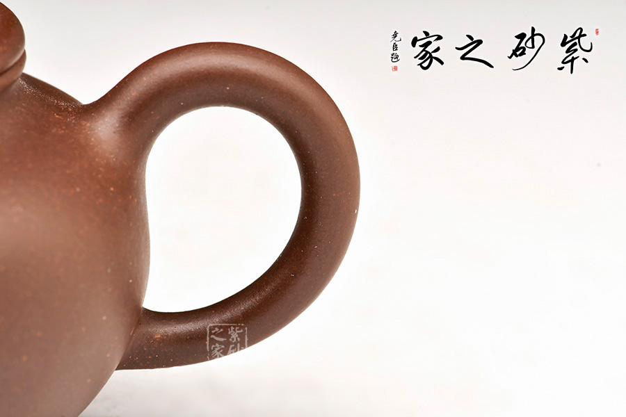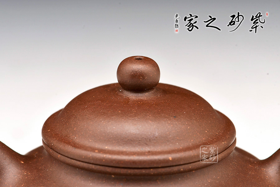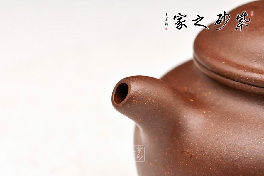 掇只為經(jīng)典的紫砂壺代表款式之一,圓潤(rùn)的壺身,斗笠似的壺蓋,珠鈕線條流暢,點(diǎn)線之間頗見(jiàn)功力。