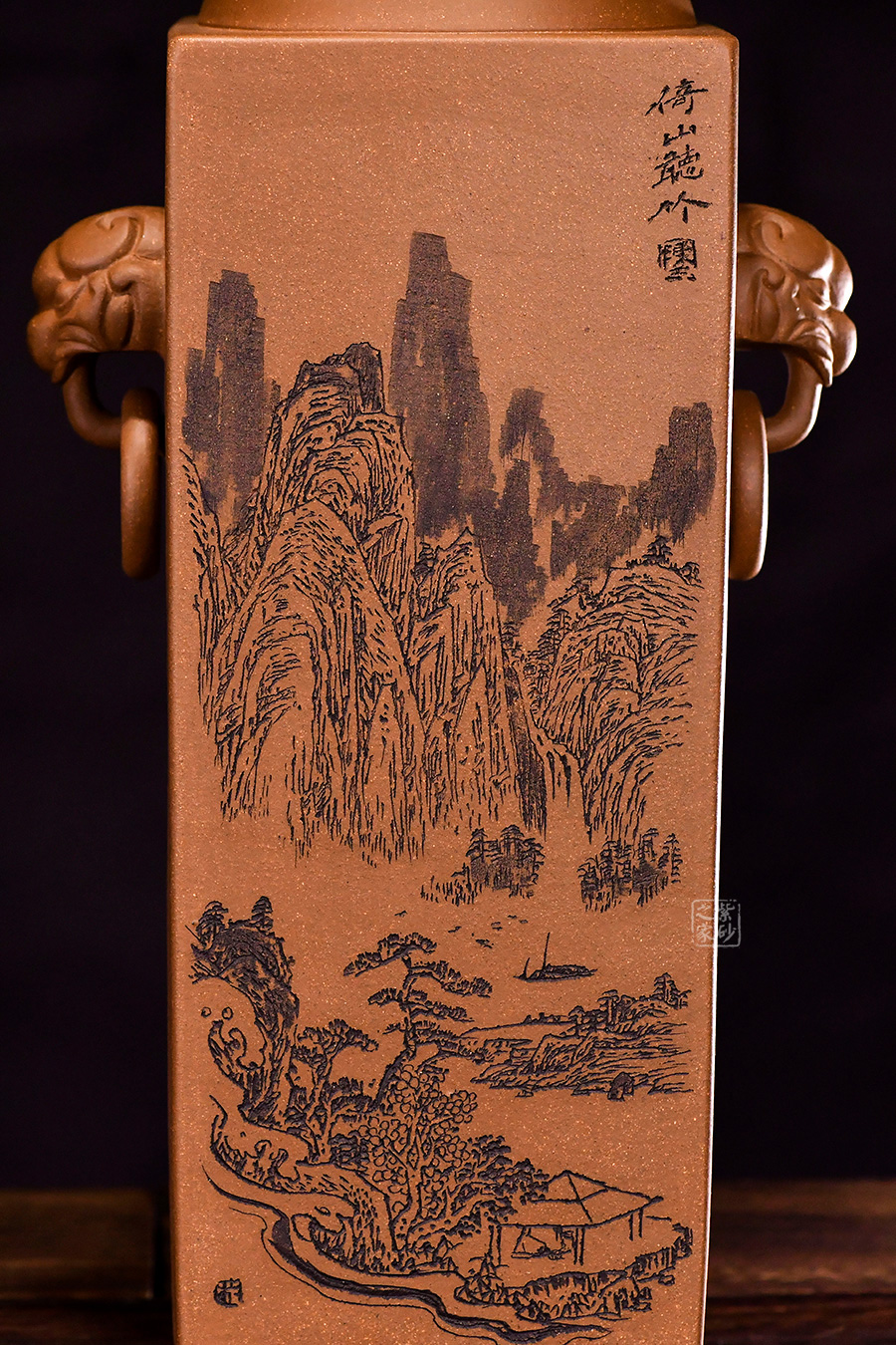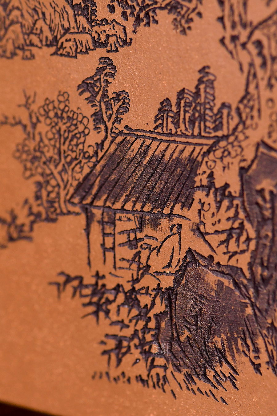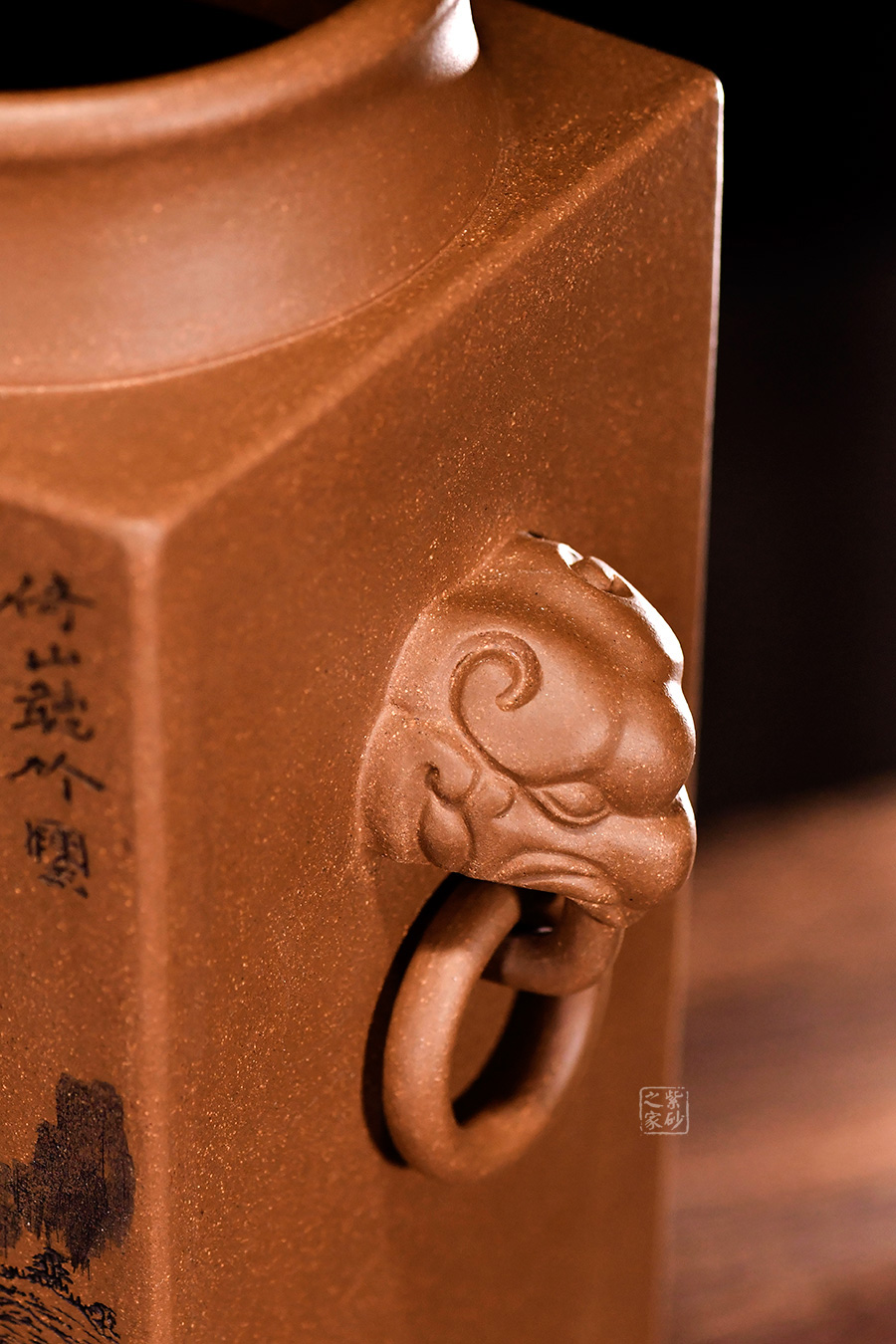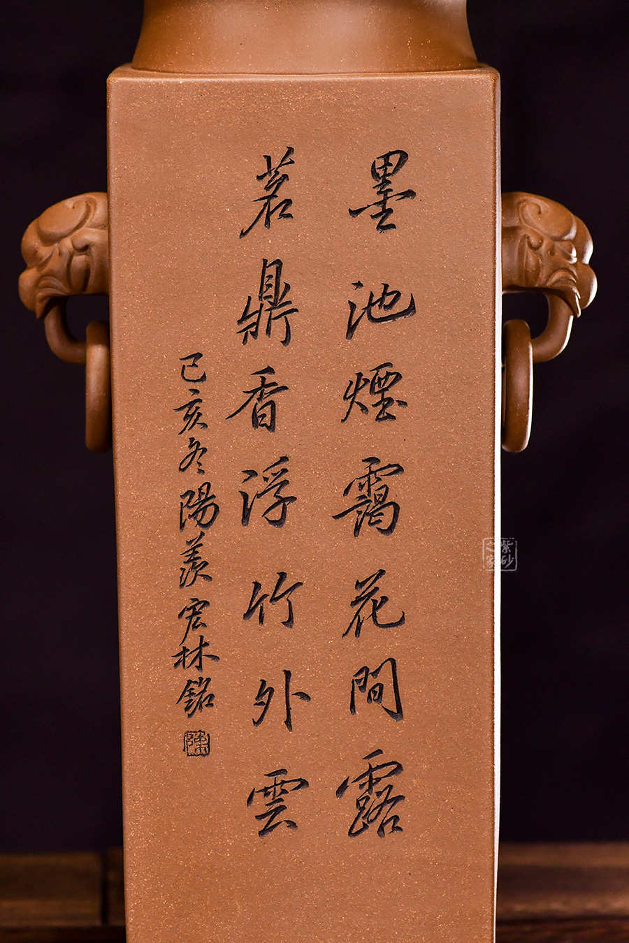 光貨離不開裝飾。俗話說(shuō)“壺隨字貴,字隨壺傳”:光壺不刻字,就是一把光壺;壺上面刻了大師、名人的字,一把壺的含金量就高了,收藏價(jià)值就更高,升值潛力就更大。王福君與中國(guó)工藝美術(shù)大師譚泉海合作最多,其次是徐安碧、鮑志強(qiáng)、毛國(guó)強(qiáng)(均為中國(guó)工藝美術(shù)大師、中國(guó)陶瓷藝術(shù)大師)。