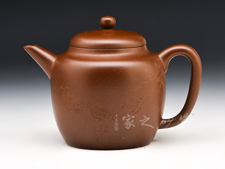 壺身呈直筒型,較高,收肩,壓蓋,橋型壺鈕,直流式壺嘴,圓耳型壺把。壺身渾樸古拙,氣韻深沉,渾厚而大氣。