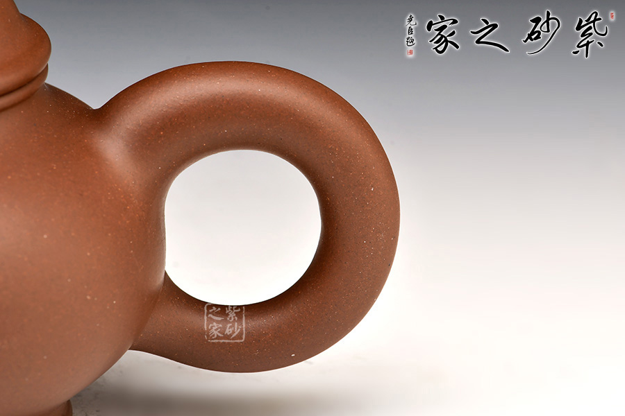 這款“清影”造型小巧美妙,讓人把玩欲罷不能。壺身扁圓可愛,輪廓明朗,圈足和壺頸上下對(duì)應(yīng),美感頓生。壓蓋的子母線對(duì)仗工整,嚴(yán)絲合縫。珠型壺鈕由鼓蓋拱衛(wèi),精巧圓滑,似稀世珍寶。壺嘴和壺把渾圓短粗,氣質(zhì)沉穩(wěn),非常有古典的韻味。通身來看,此壺之精妙寓巧于拙,越是把玩越覺韻味無窮。
