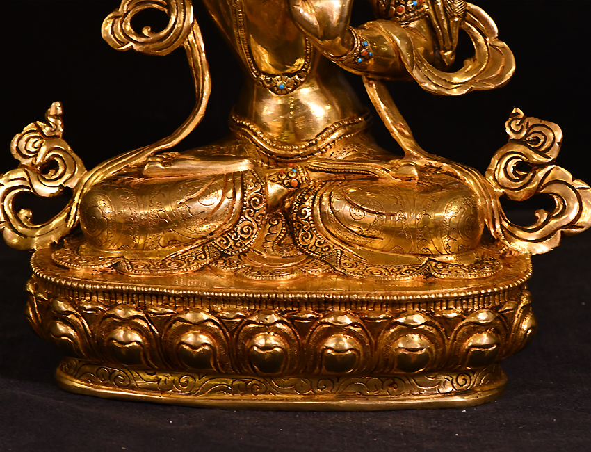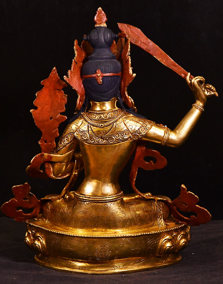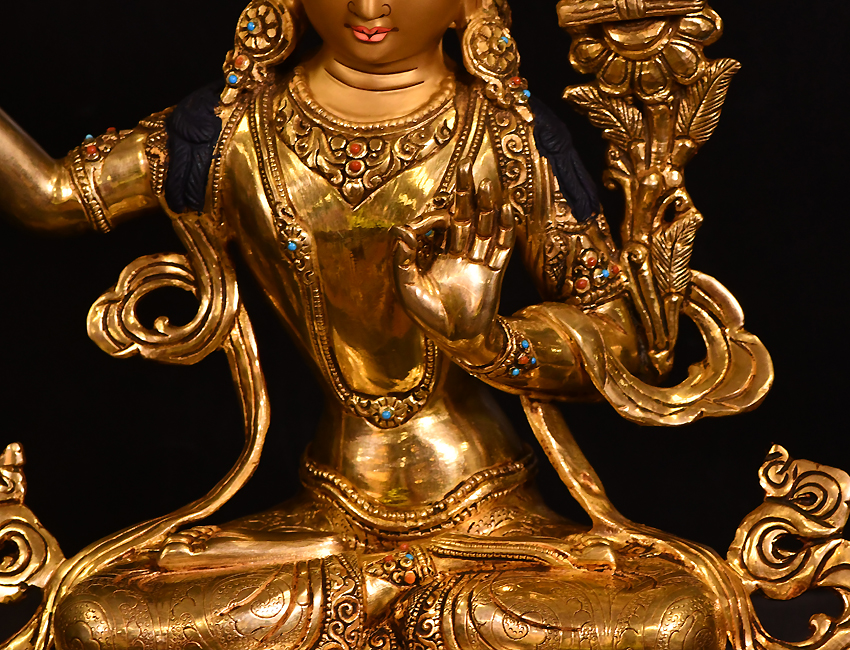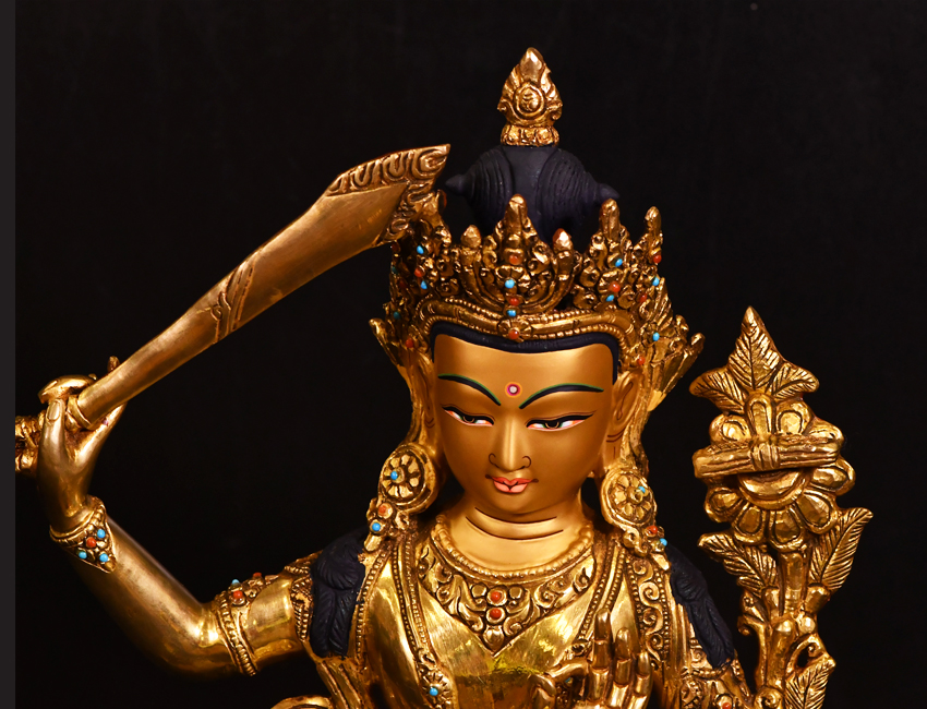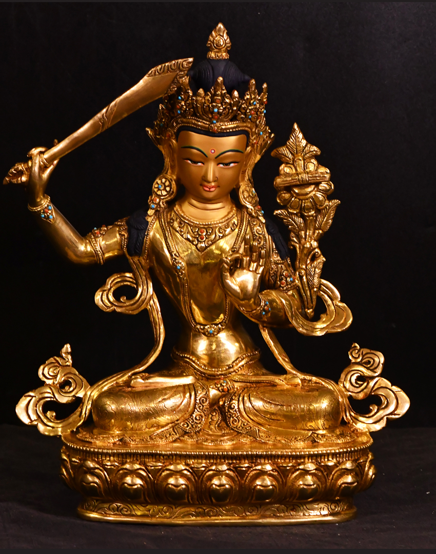 大圣唐卡商城 >> 作品詳情 >> 尼泊爾佛像文殊菩薩鎏金33cm