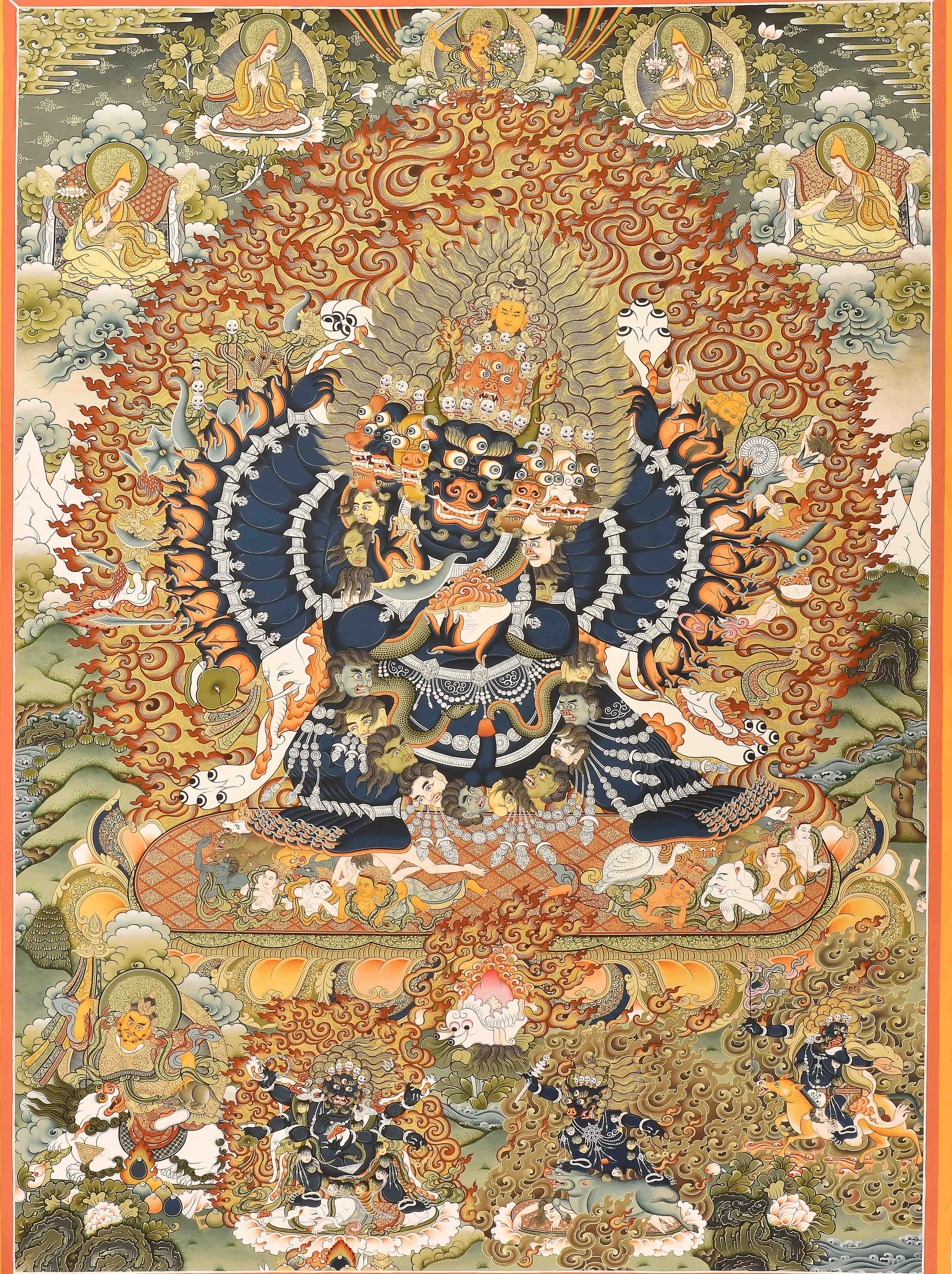 大威德金剛,大威德金剛是格魯派密宗所修本尊之一,因其能降服惡魔,故稱大威,又有護善之功,故又稱大德。