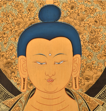 | 唐卡“師傅”開臉,筆路穩重流暢。體現完美天人相,可見佛菩薩慈眉善目,賦予唐卡畫像生的靈氣。 | 細節決定品質,點睛之筆不到位影響整體美觀,五官比例不協調,面目呆板,缺乏靈氣。 |