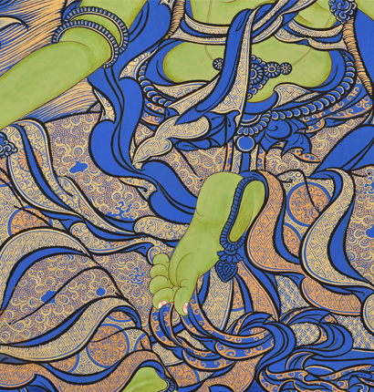 此幅唐卡為青海熱貢唐卡,藍唐。