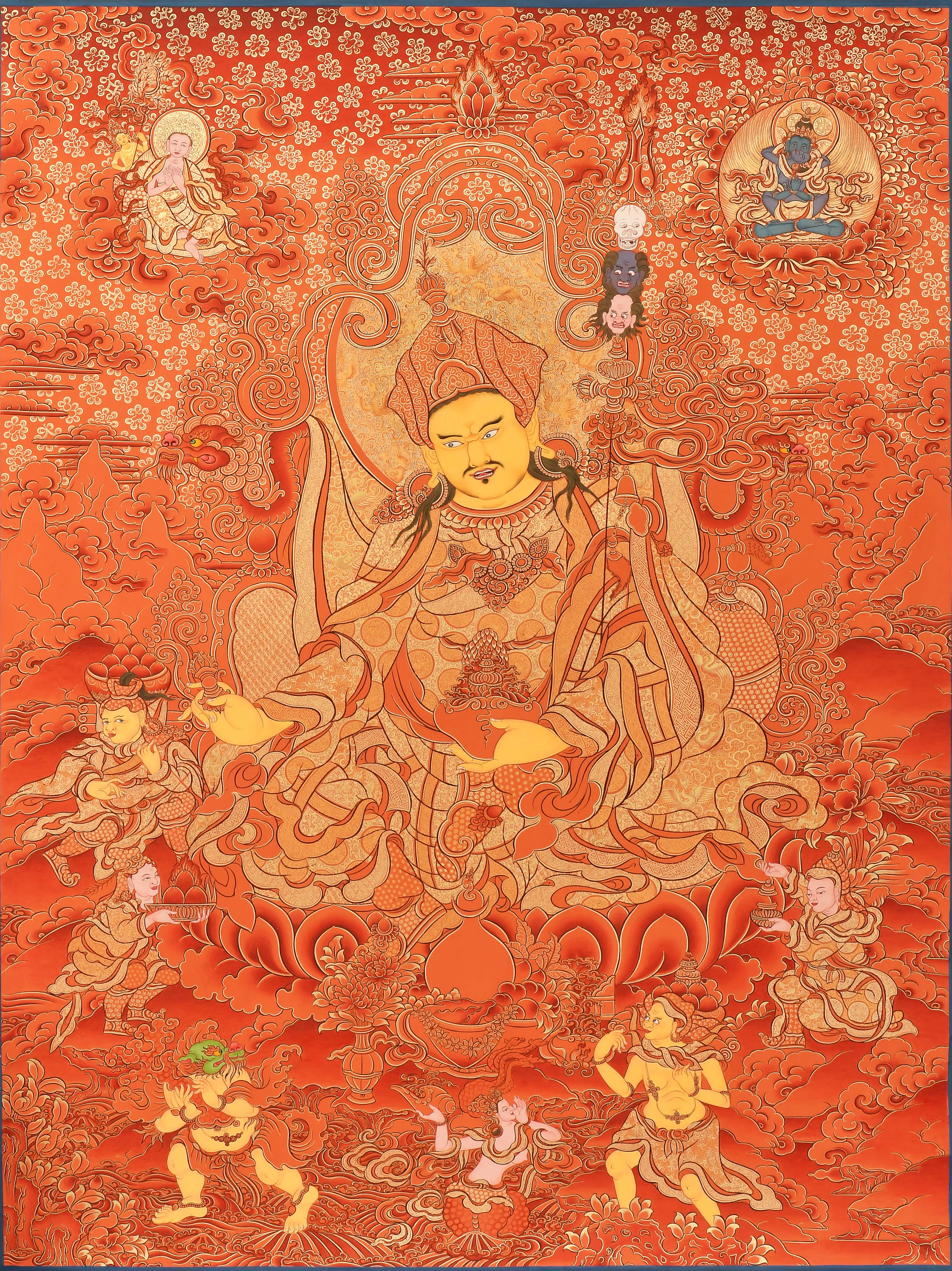 產(chǎn)地:熱貢 工藝:朱紅唐 創(chuàng)作年份:2020 題材:蓮花生大師 繪制時(shí)間:3月 尺寸:*70*100cm 裝裱: 材質(zhì):織面 使用場(chǎng)地: