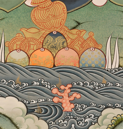 | 唐卡是歷史的瑰寶,現(xiàn)已被例入國家非物質(zhì)文化遺產(chǎn)名錄,得到了高度的重視和保護。同時由于顏料的珍稀、繪制周期長、工藝復雜大大增強了其珍藏價值。一幅好的作品可遇不可求,近年來唐卡已成為收藏界炙手可熱的藏品。 | 唐卡的形式便于攜帶,其內(nèi)容體現(xiàn)了藏傳佛教的莊重、神圣、華貴,被稱為“移動的佛像”。同時也是修行者積累善業(yè),追尋心靈的平靜與安寧的一個過程。 | 唐卡的內(nèi)容包羅萬象,它以圖像的方式承載著藏族文化精髓,是藏族智慧的結(jié)晶,廣泛傳播了藏地的文化、歷史和宗教理論。 | 唐卡絢麗的色彩、流暢的線條、嚴謹?shù)慕Y(jié)構(gòu),都充滿著濃郁的高原和游牧民族風情,無疑是難得的藝術(shù)珍品。值得一提的是唐卡繪制顏料全部為天然礦物顏料,畫面效果艷麗,可以保存千年而不變色。 |