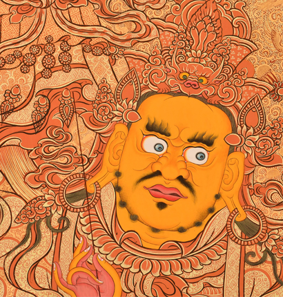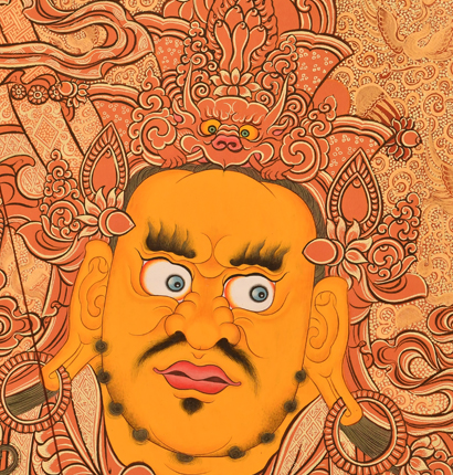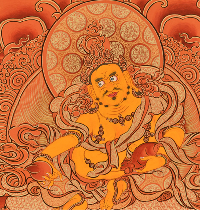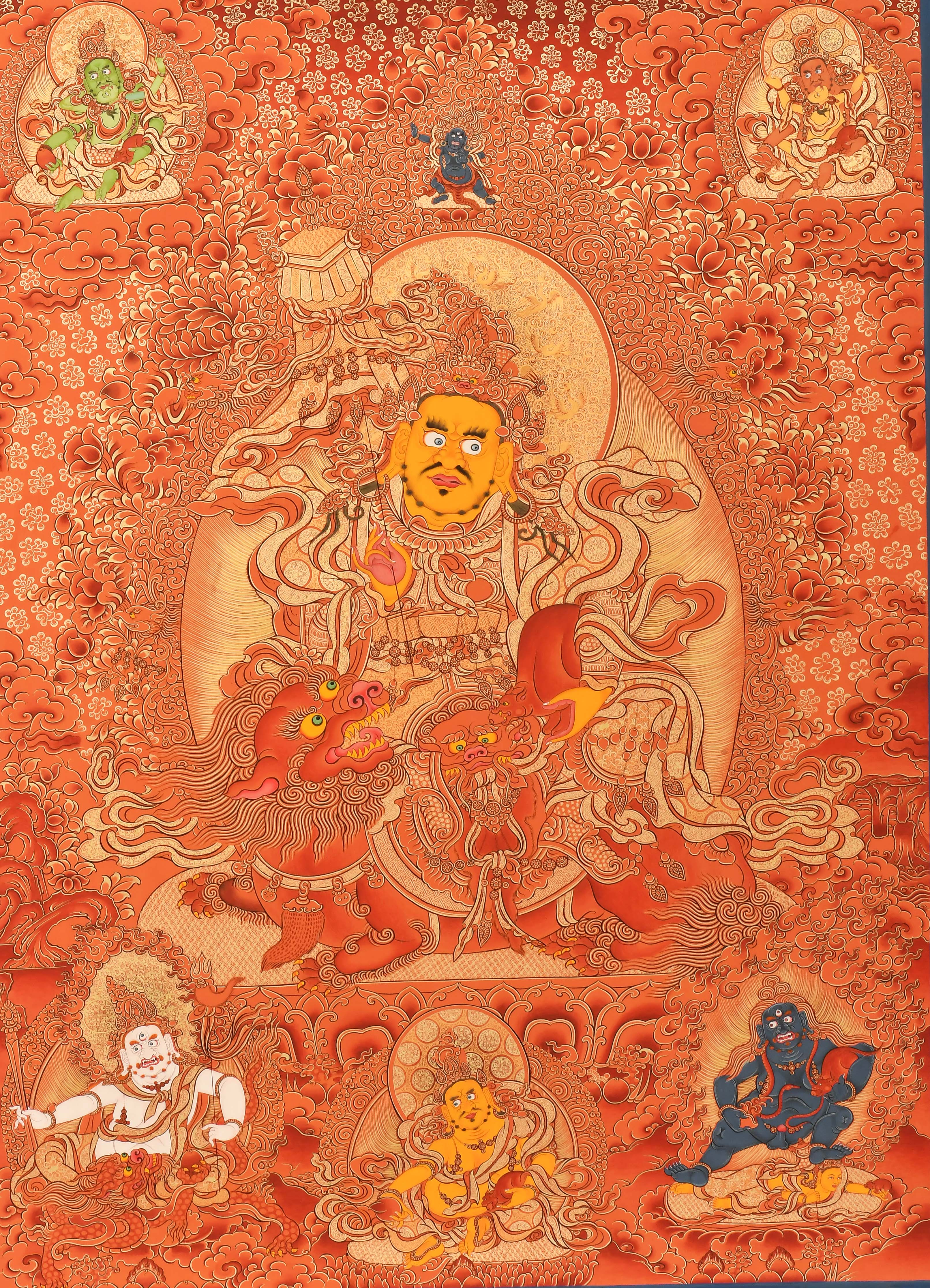 產(chǎn)地:熱貢 工藝:朱紅唐 創(chuàng)作年份:2020 題材:財寶天王 繪制時間:3月 尺寸:*70*100cm 裝裱: 材質(zhì):織面 使用場地: