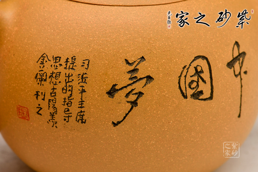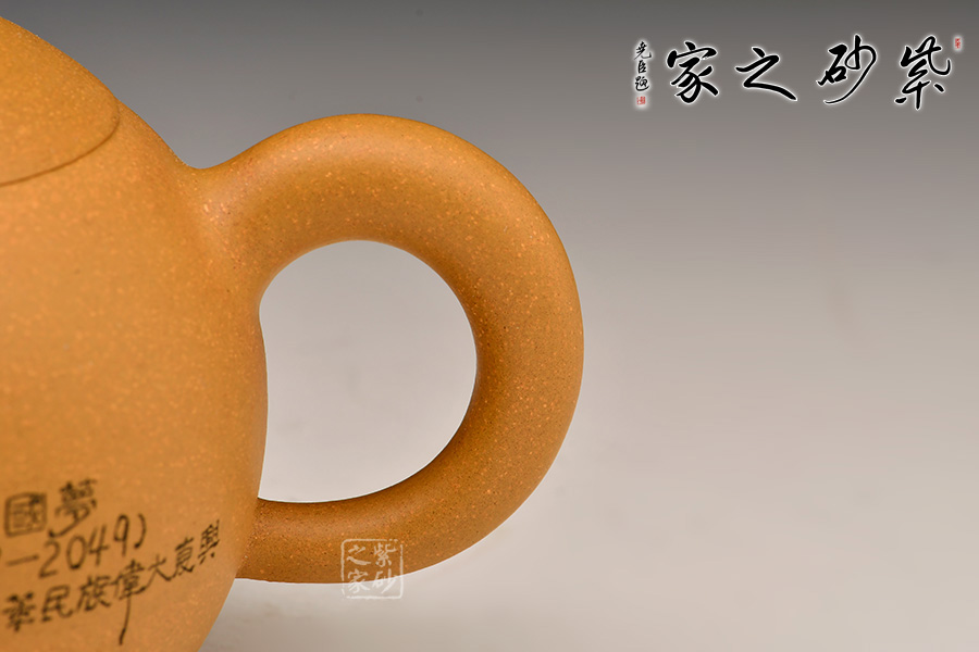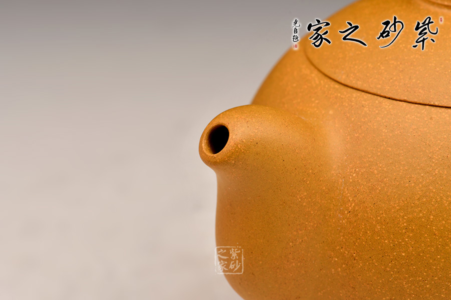 泥性:感甜嫩綿密,質(zhì)堅(jiān)而溫潤(rùn),呈近田黃色調(diào),為江蘇宜興趙莊山系朱泥礦~黃石黃之共生礦,經(jīng)挑揀練製而成,因含鐵量只達(dá)6%左右,致陶之后呈“金田黃色”。