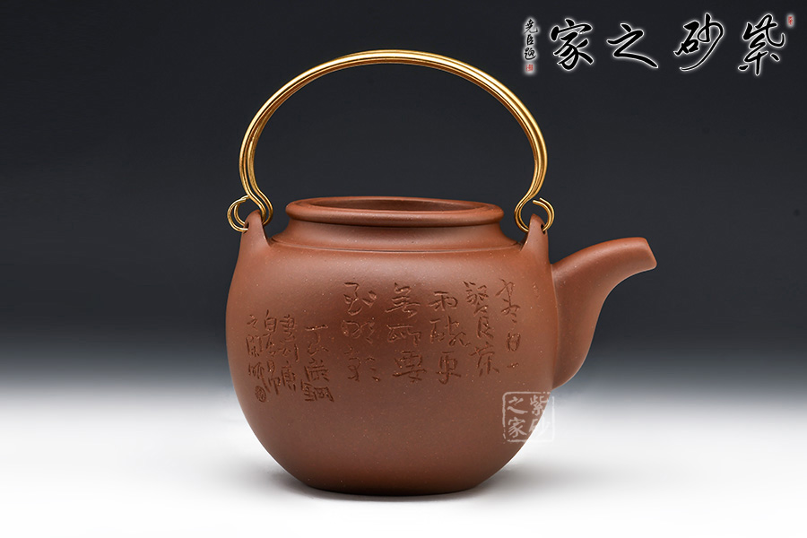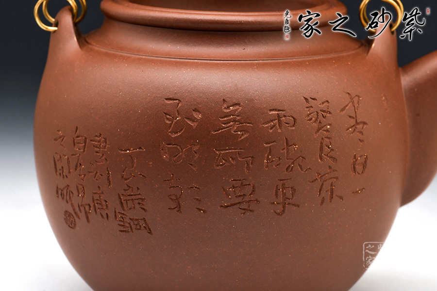 經(jīng)典壺型蛋包壺,造型樸素精雅,圓潤豐滿,外加提梁為嘉、道以來砂壺所習(xí)見,此當(dāng)為砂壺仿制之新型壺式。