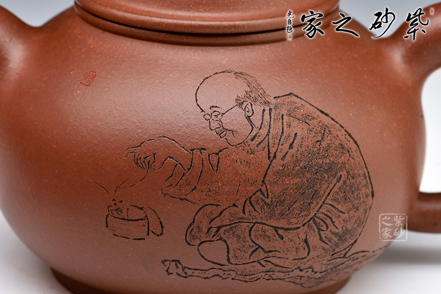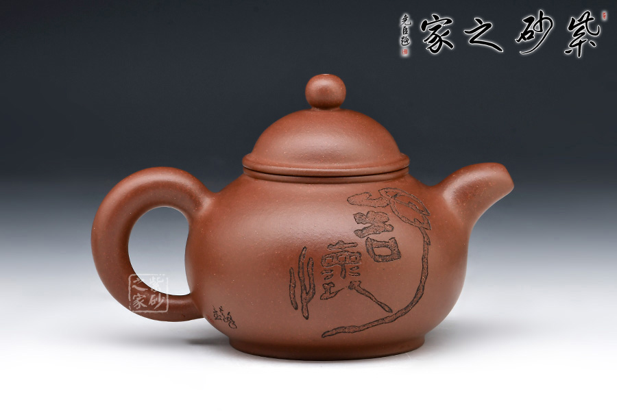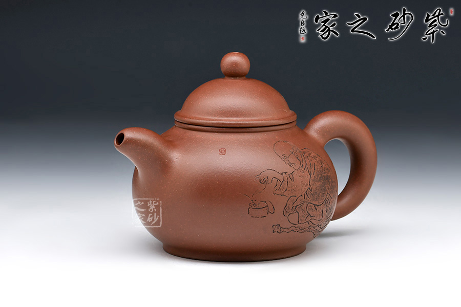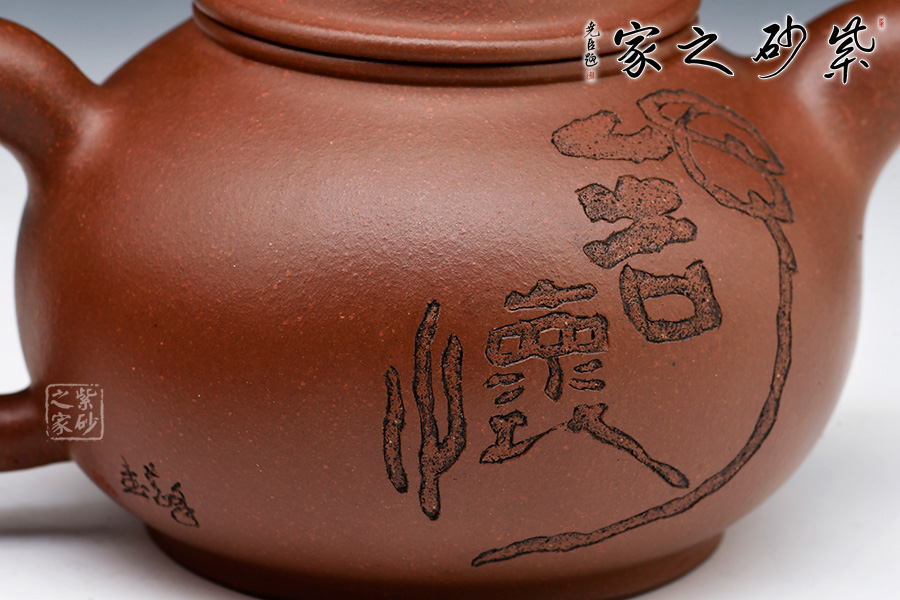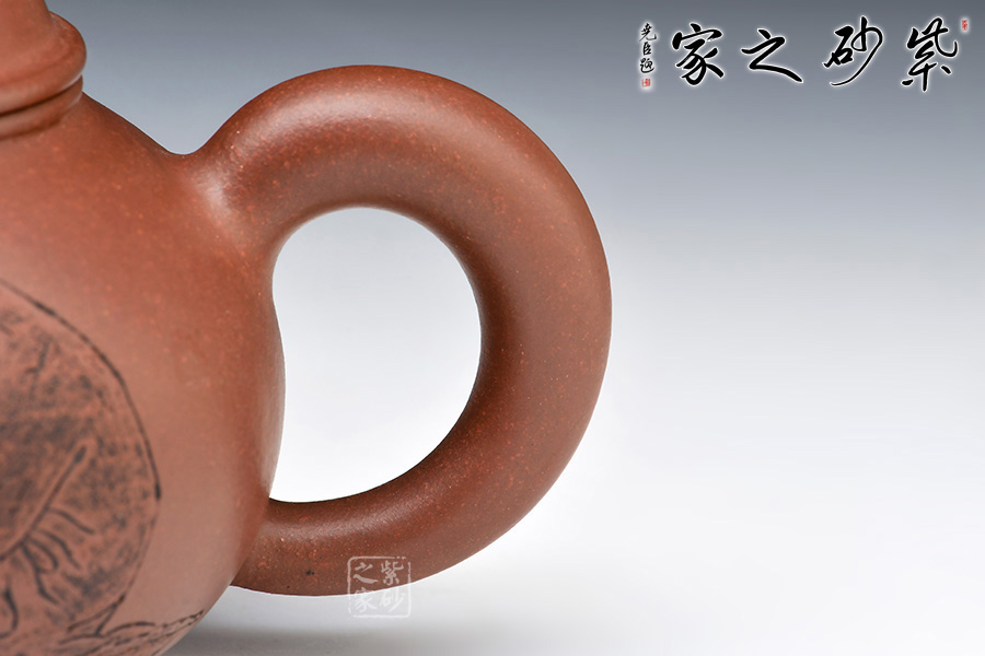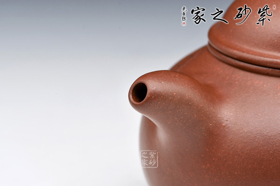 整體氣質樸素無華,端莊大方,彎流,耳形把,壺腹扁圓,壺口留唇,蓋鼓,圓珠鈕。整體比例協(xié)調、珠圓玉潤,把握舒適,把玩品茗,令人賞心悅目。
