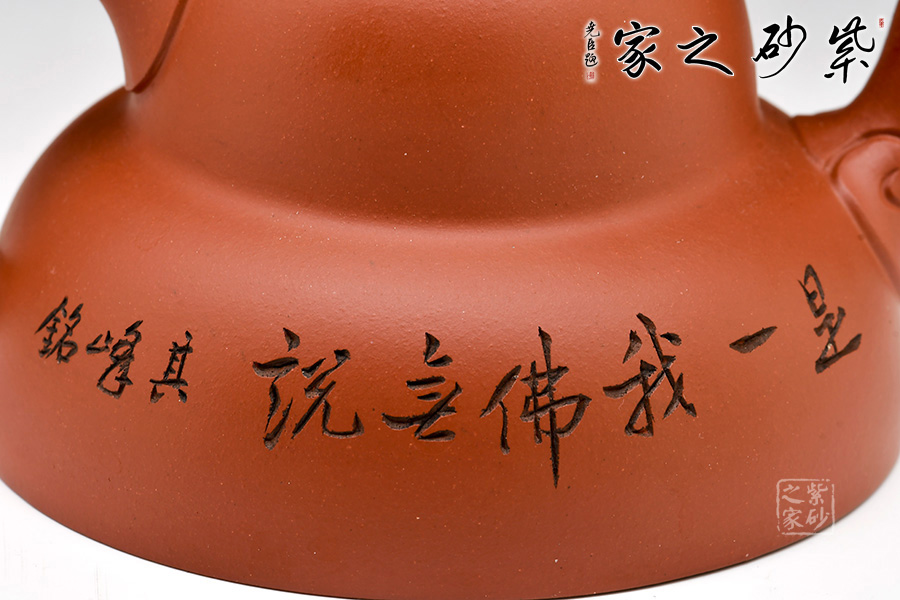 通體裝飾: 裝飾: 銘文 裝飾者:其峰 裝飾內(nèi)容: “笠蔭暍 茶去渴 是二是一 我佛無說 曼生銘。”