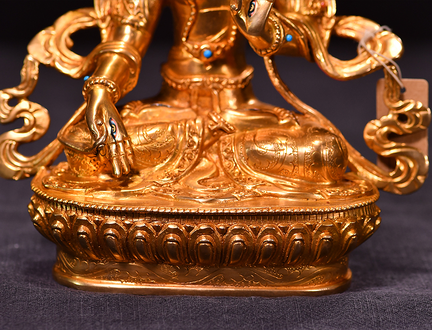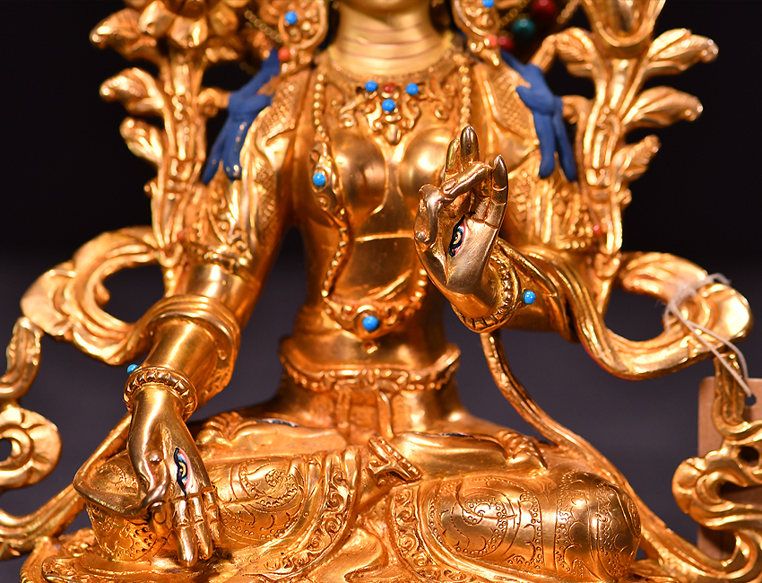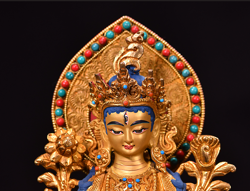 尼泊爾佛像也稱之為密宗佛像或藏傳佛像,尼泊爾佛像是以紫銅為胎體,黃金為外衣,純手工打造的銅鎏金佛像,使用泥金進行開臉,異常殊勝所以尼泊爾佛像價格比國內機器佛像普遍要高一些!