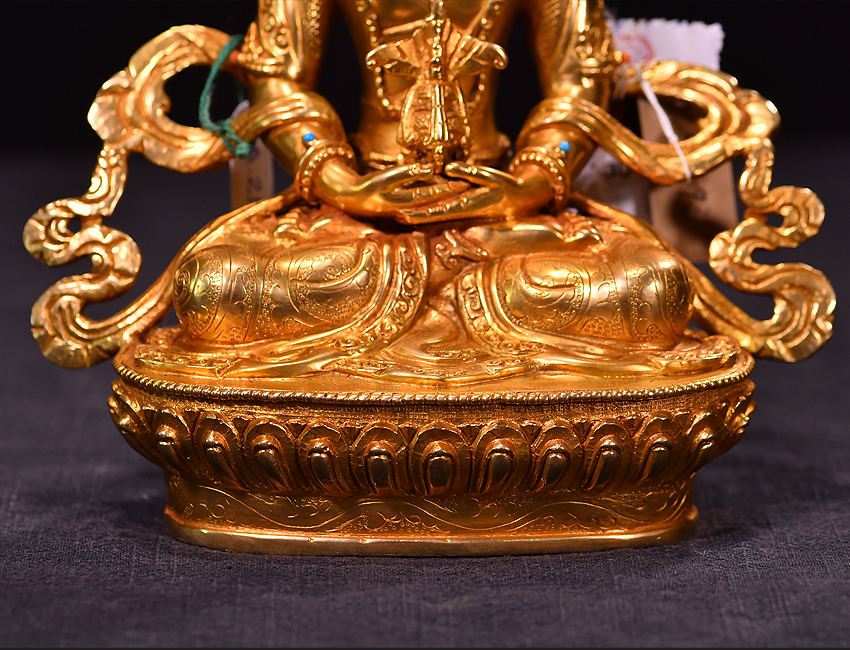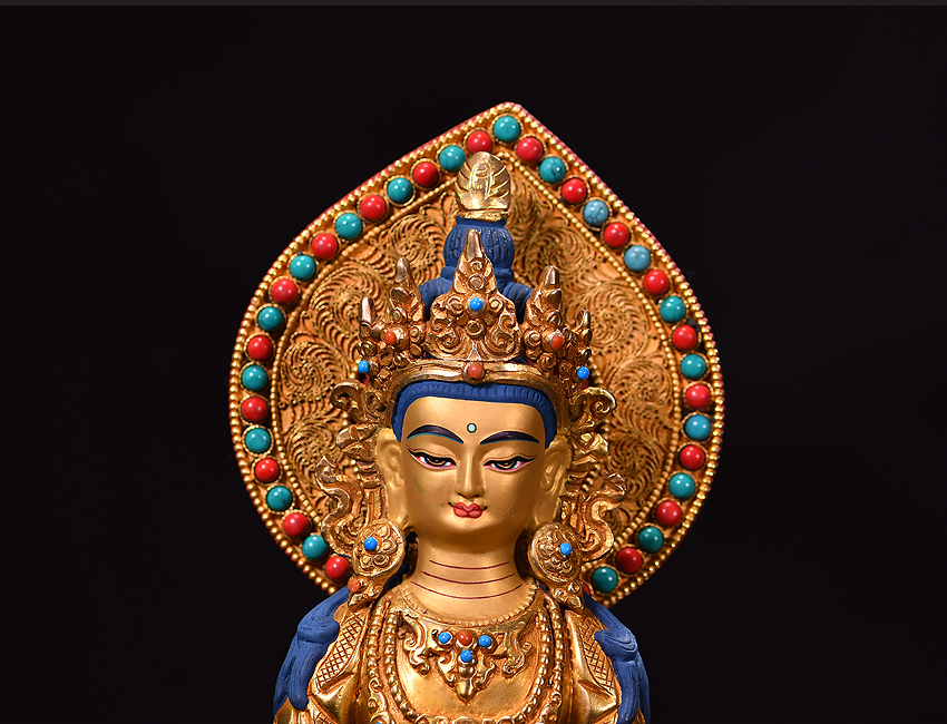 尼泊爾佛像也稱之為密宗佛像或藏傳佛像,尼泊爾佛像是以紫銅為胎體,黃金為外衣,純手工打造的銅鎏金佛像,使用泥金進行開臉,異常殊勝所以尼泊爾佛像價格比國內機器佛像普遍要高一些!