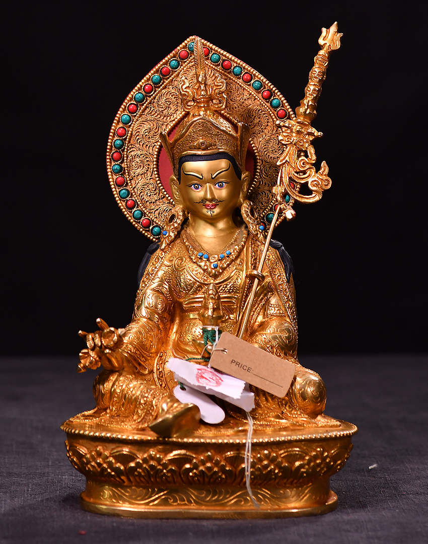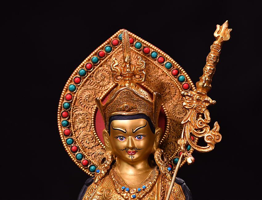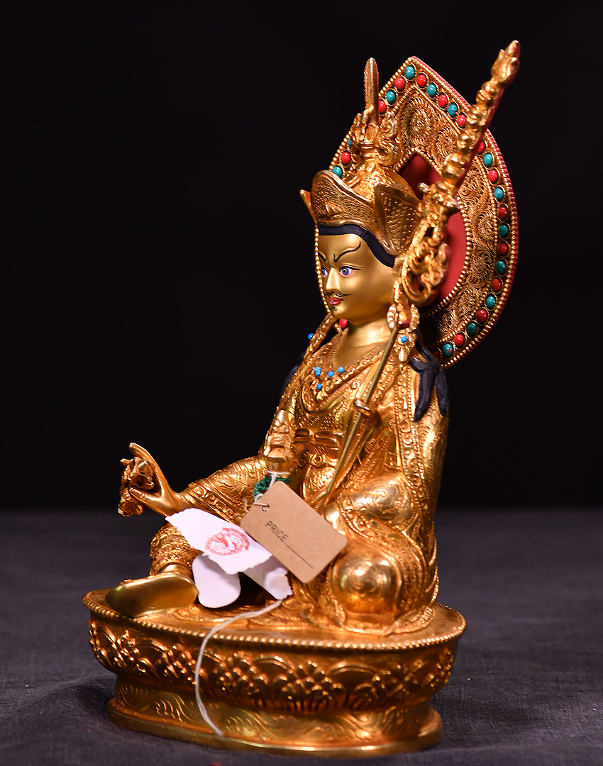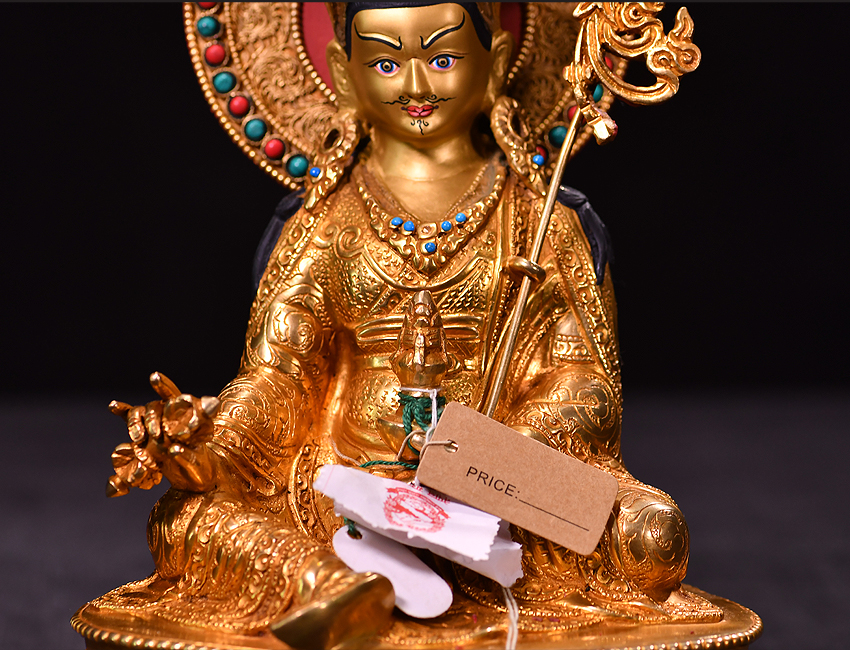 產地:尼泊爾佛像 工藝:鎏金 創作年份:2020 題材:蓮花生大師 繪制時間:0日 尺寸:*23cm 重量:0 g 材質:紫銅 使用場地: