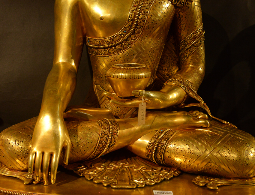 尼泊爾佛像也稱之為密宗佛像或藏傳佛像,尼泊爾佛像是以紫銅為胎體,黃金為外衣,純手工打造的銅鎏金佛像,使用泥金進行開臉,異常殊勝所以尼泊爾佛像價格比國內機器佛像普遍要高一些!