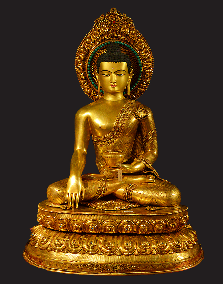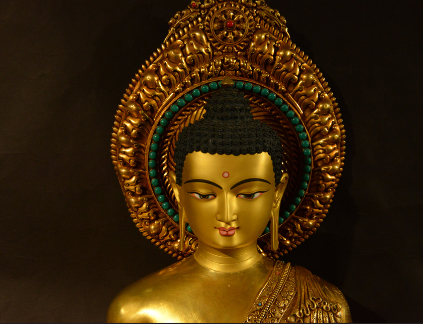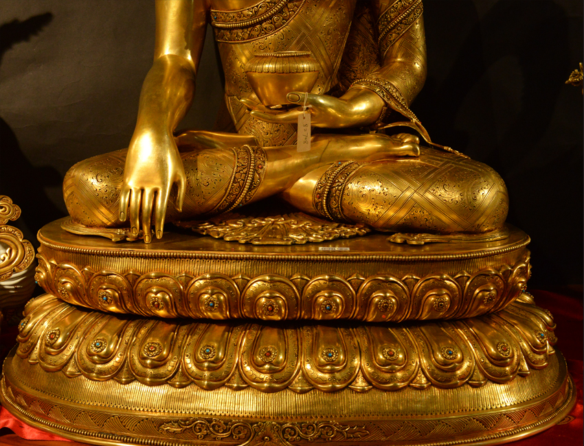 產地:尼泊爾佛像 工藝:鎏金 創作年份:2020 題材:釋迦牟尼 繪制時間:0日 尺寸:*90cm 重量:0 g 材質:紫銅 使用場地: