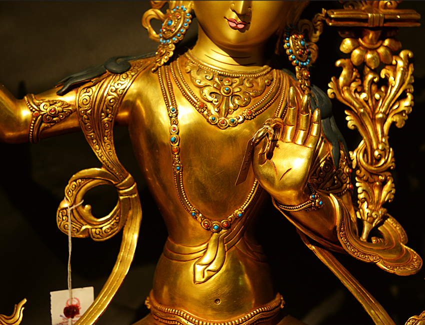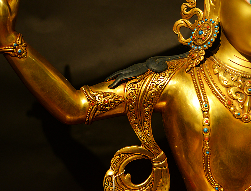 尼泊爾佛像也稱之為密宗佛像或藏傳佛像,尼泊爾佛像是以紫銅為胎體,黃金為外衣,純手工打造的銅鎏金佛像,使用泥金進行開臉,異常殊勝所以尼泊爾佛像價格比國內機器佛像普遍要高一些!